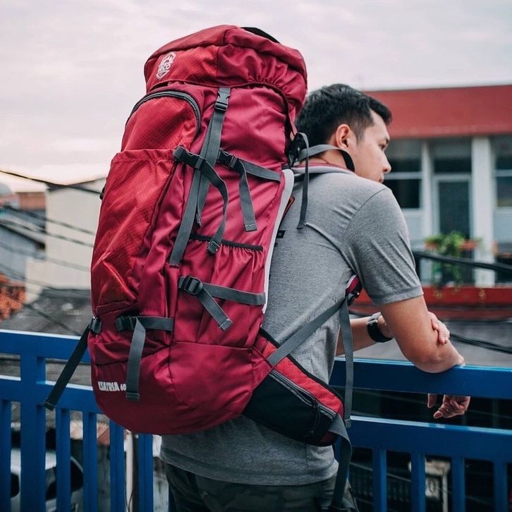 Tas Ransel Gunung Carrier Outdoor Hiking 60 Liter Pria Free Rain Cover Bag