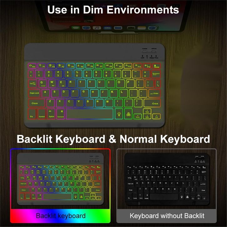 KEYBOARD LED COLORFUL BLUETOOTH FOR IPAD LAPTOP ANDROID IPHONE 10 INCH BACKLIT BACKLIGHT WIRELESS ORIGINAL
