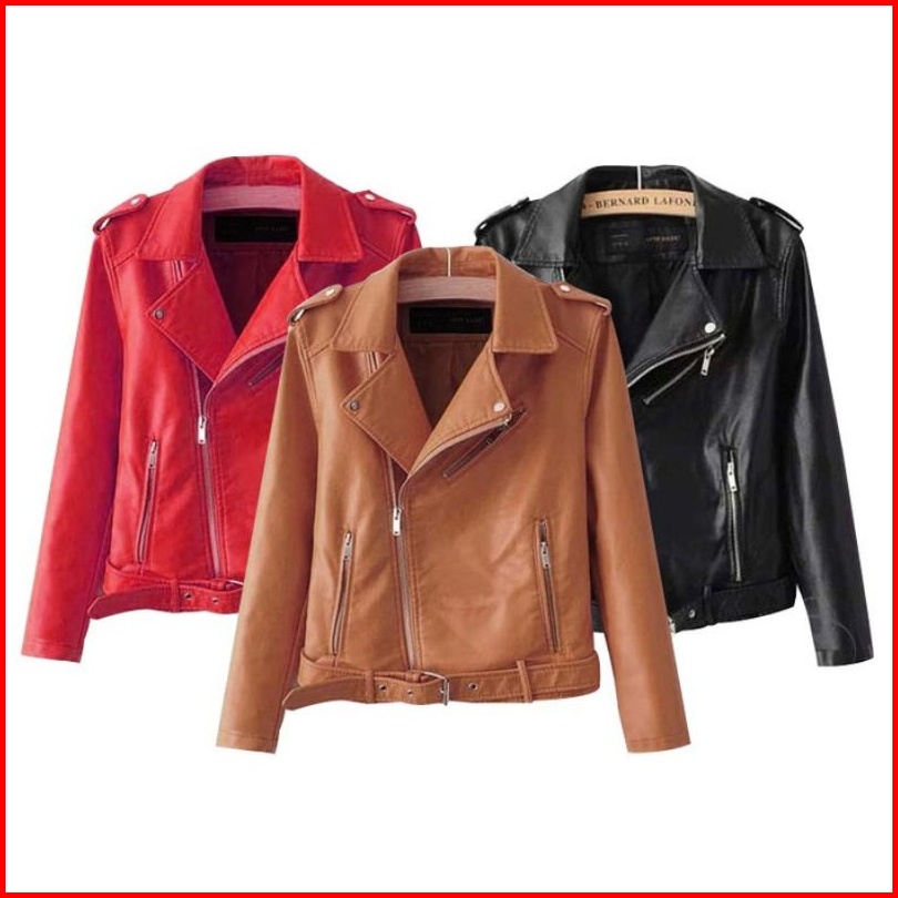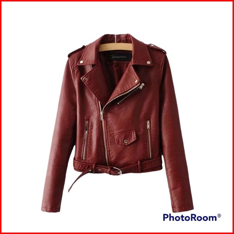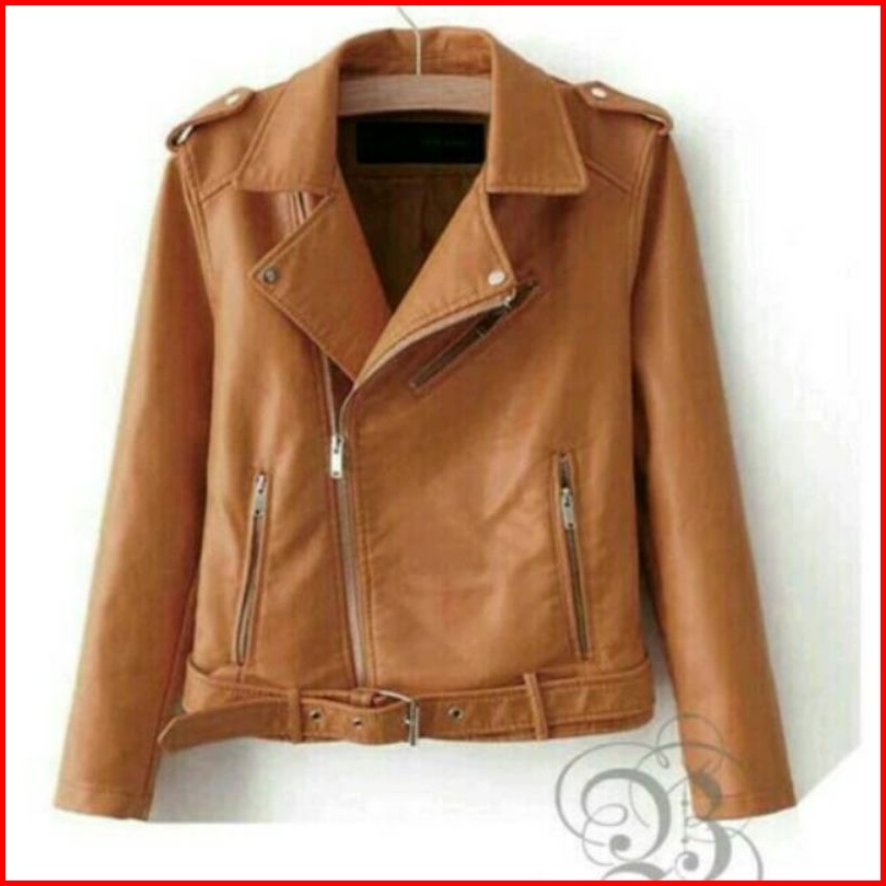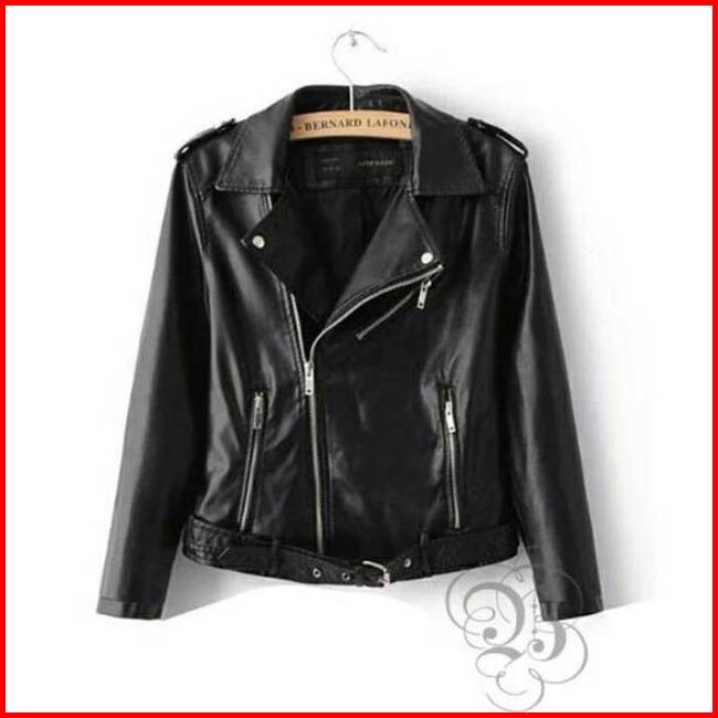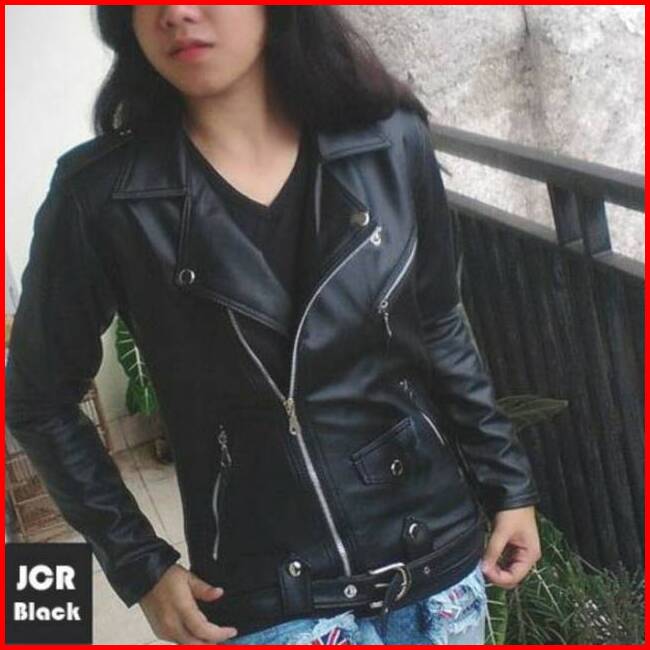 Jaket Kulit Sintetis Cewe Raisa Hitam M-xl
