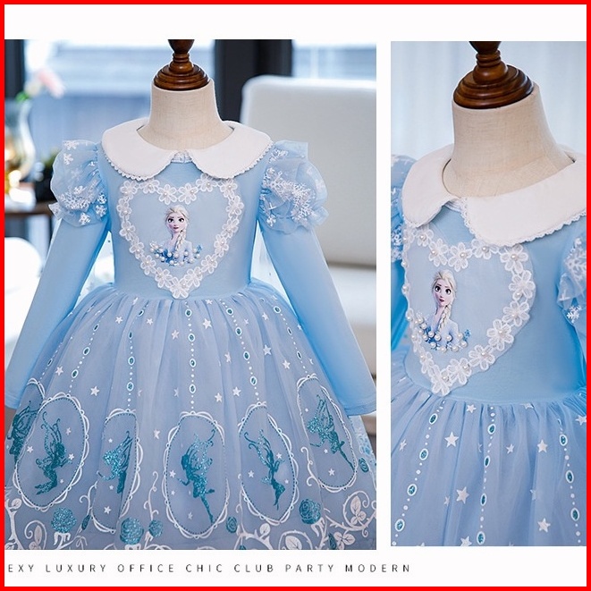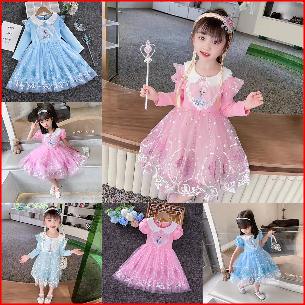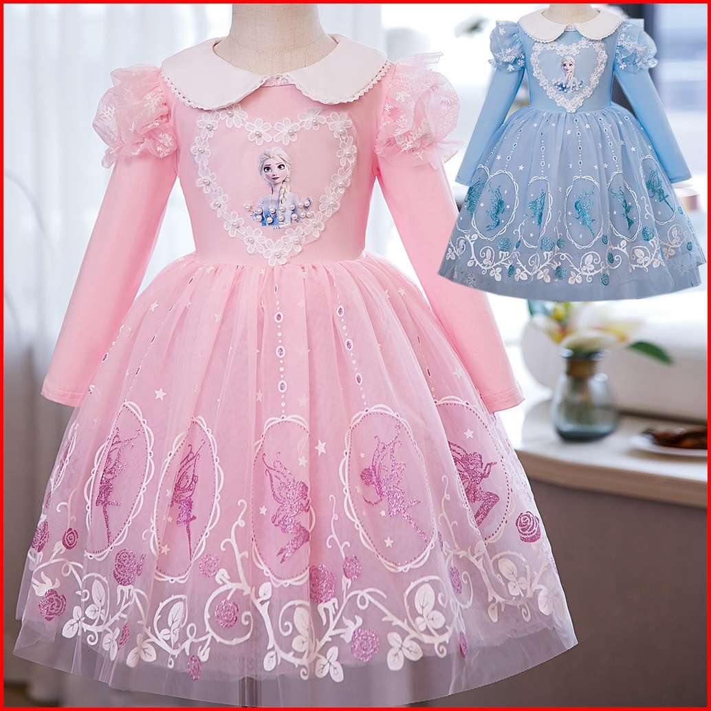 2-10 Thn Anak Perempuan Frozen Elsa Princess Dress Untuk Pesta Bunga Lengan Panjang Gaun Tutu