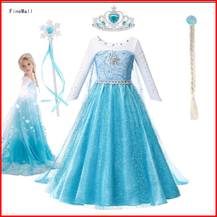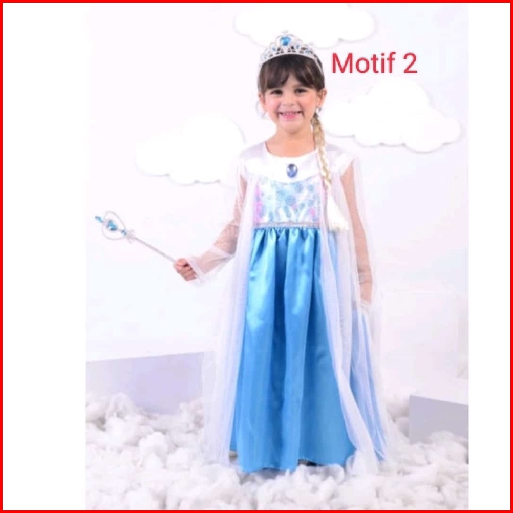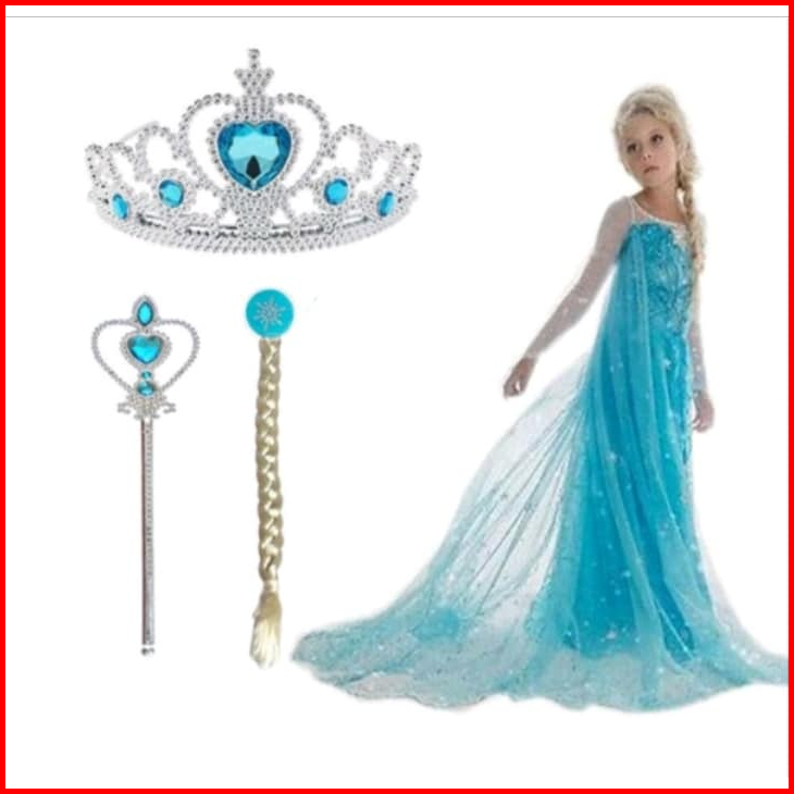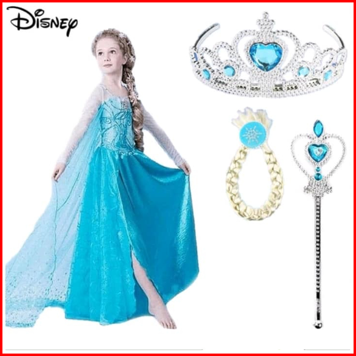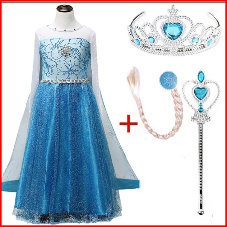 1 Set Gaun Frozen Set Aksesoris Mahkota Gaun Frozenn Baju Costume Frozenn Dres Frozen Anak Baju Pesta Gaun Pesta Frozen