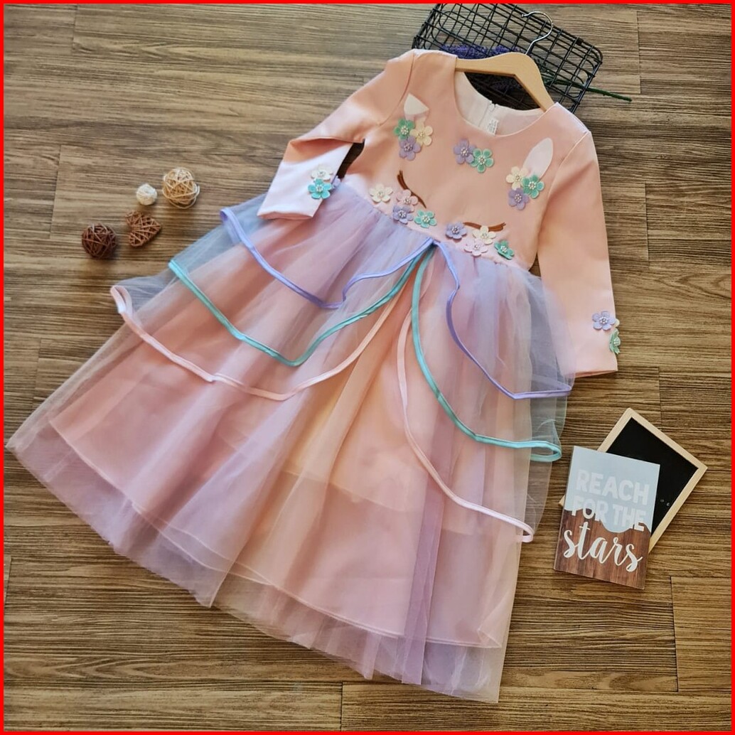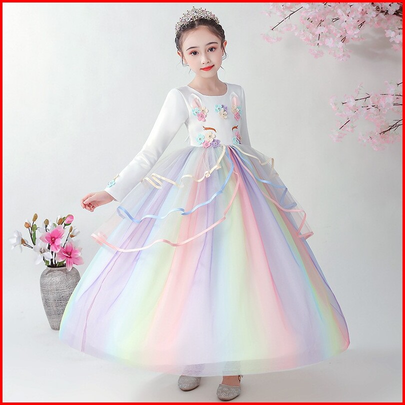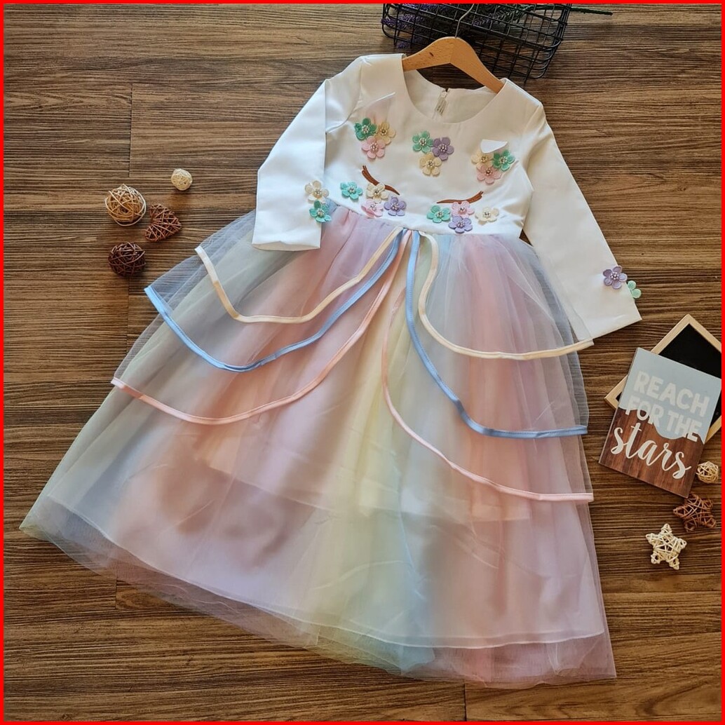 Dress Gamis Unicorn Anak Lengan Panjang Baju Ulang Tahun