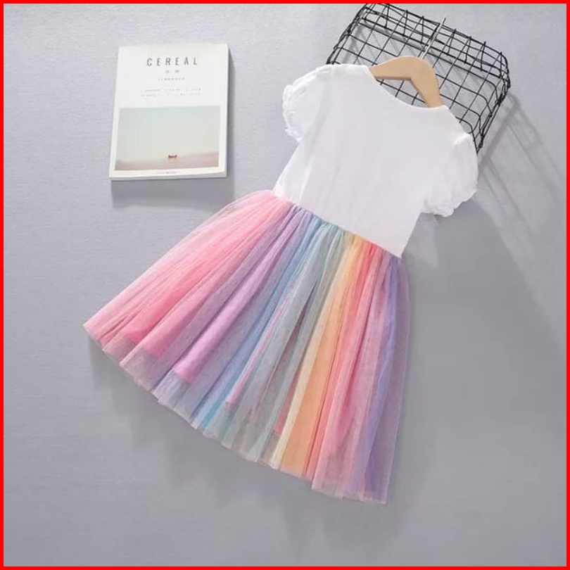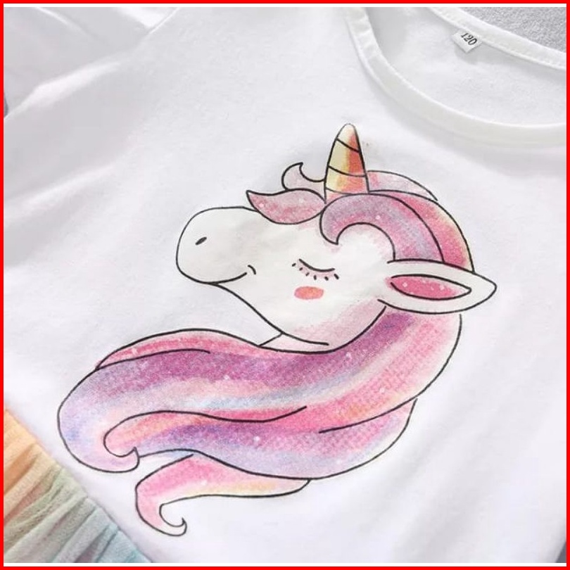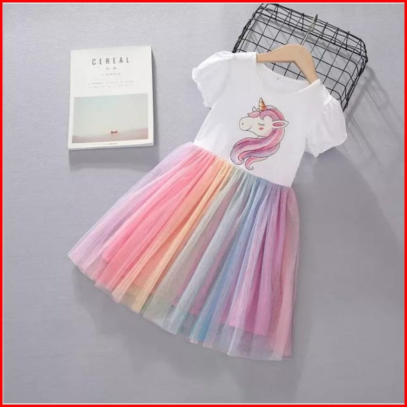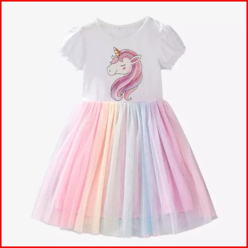 Gaun Anak Kuda Poni Dress Pelangi Dress Tutu Pelangi Anak Motif Unicorn Costum Anak Lucu