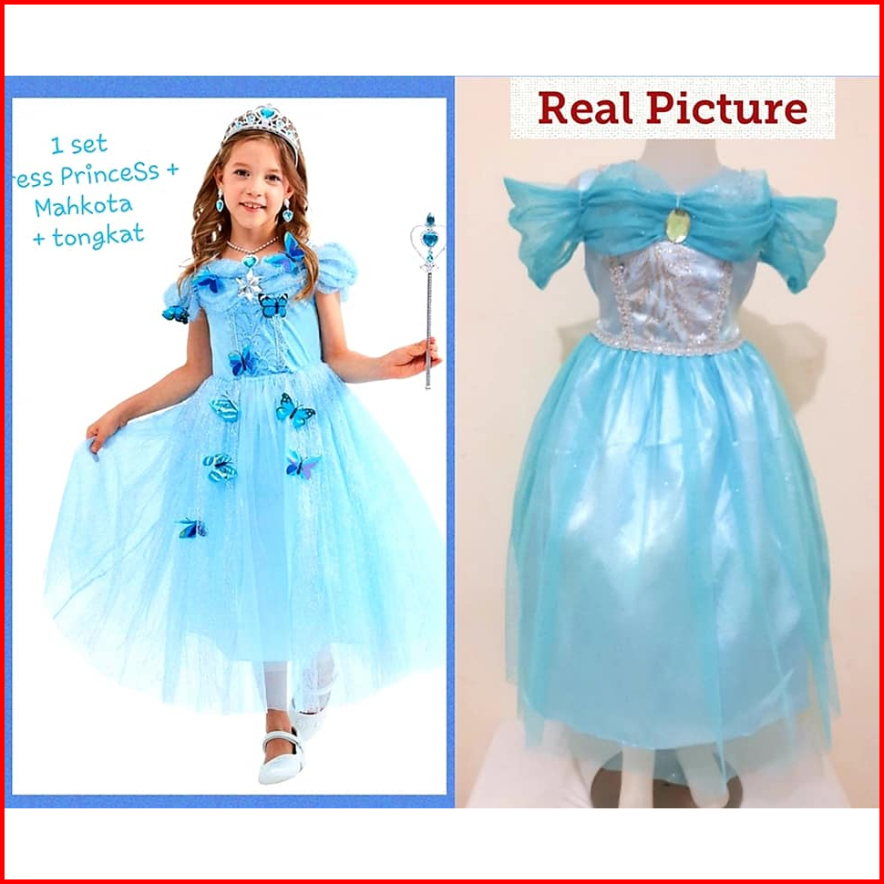 Gaun Saja Dress Princess Biru - Gaun Princess Anak - Dres Princess - Gaun Princess - Dress Frozen