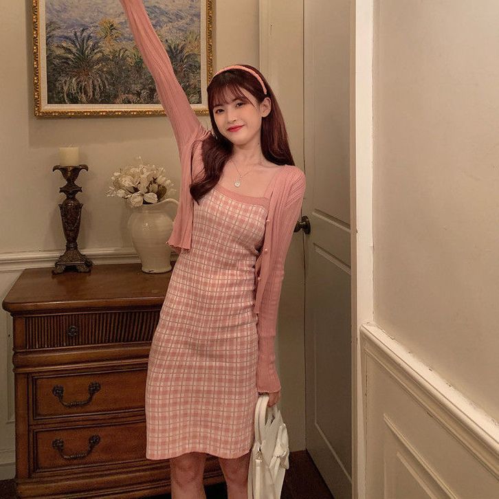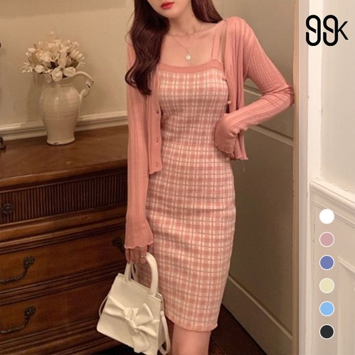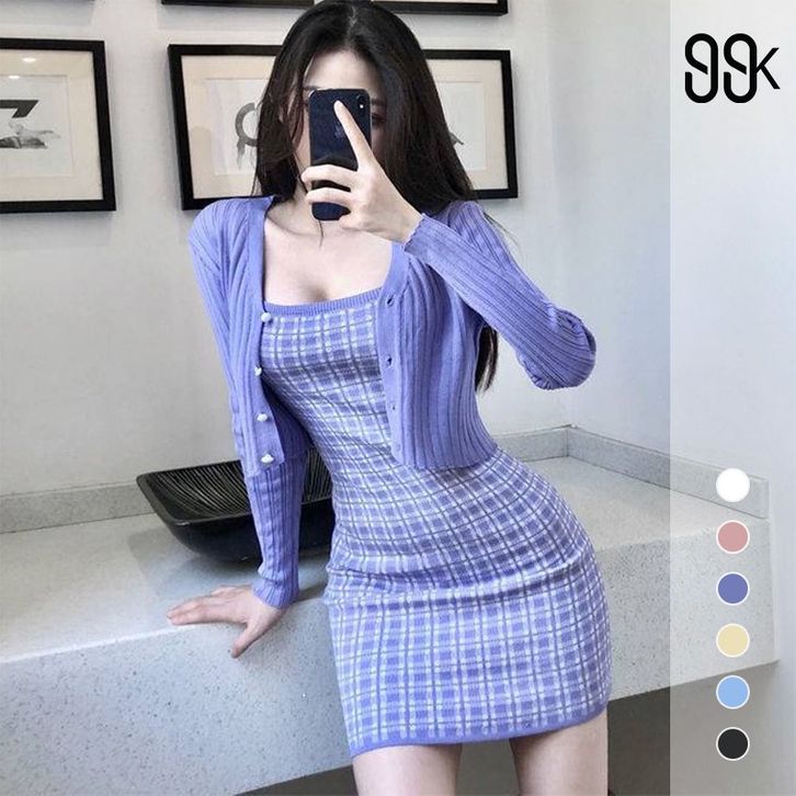 Bodycon Plaid knitted Mini Dress (Without Cardigan) 2178