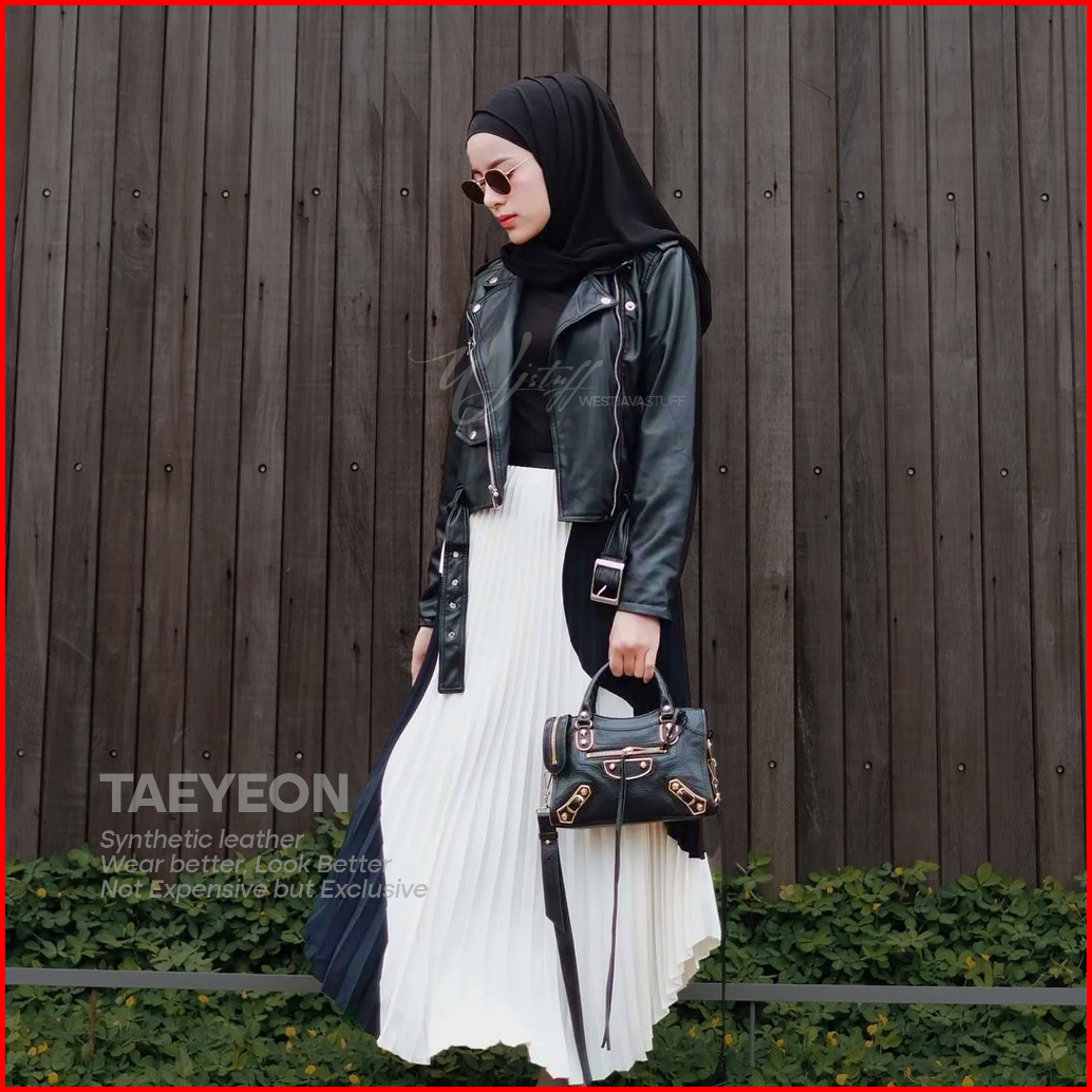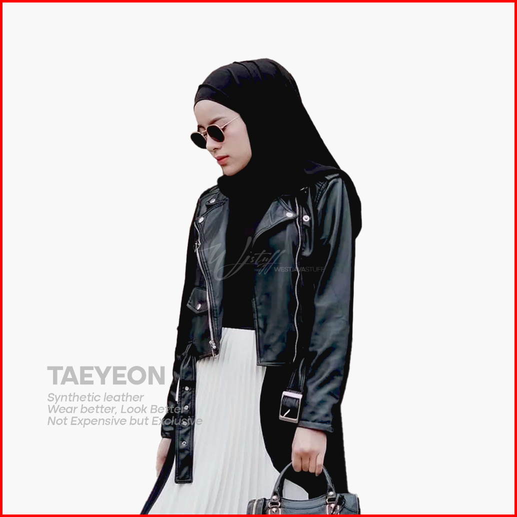 Wj Stuff - Taeyeon Jaket Kulit Sintetis Wanita Rock N Roll - Crop Mode