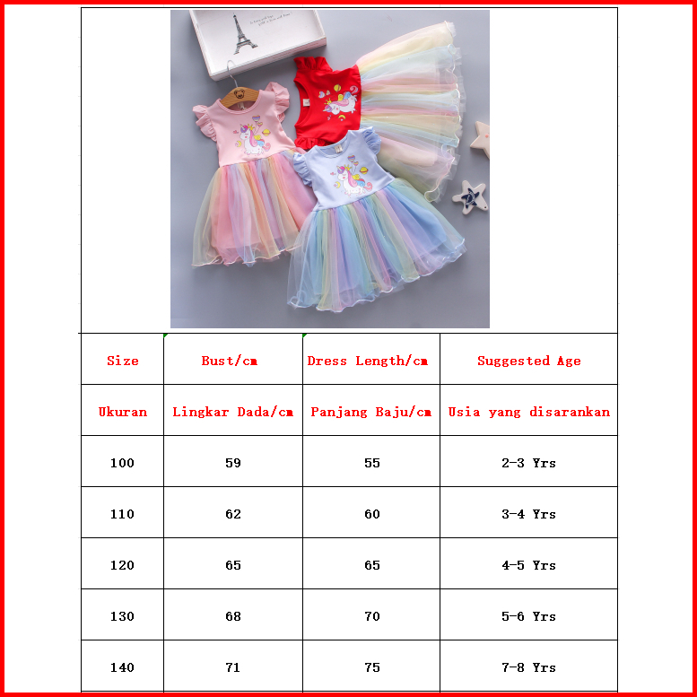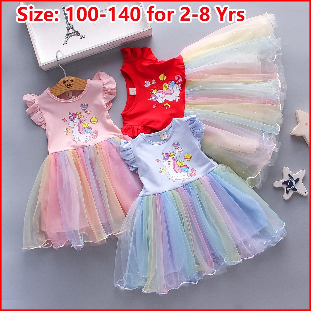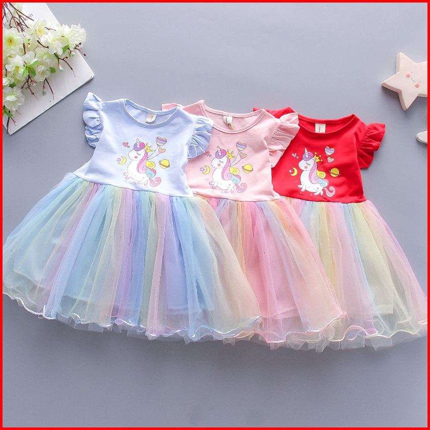 2-8 Tahun Anak Perempuan Cantik Unicorn Tutu Putri Gaun Anak-anak Gaun Ulang Tahun Kasual Tutu