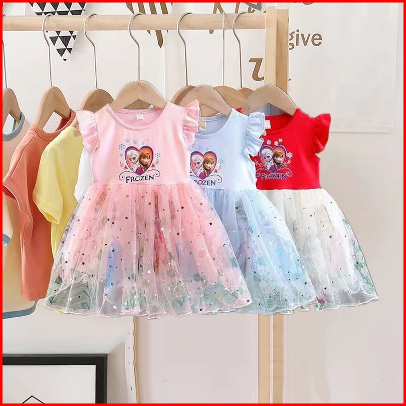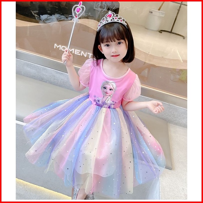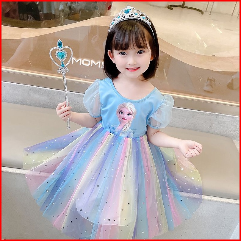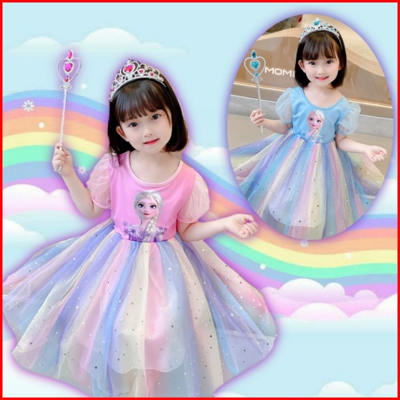 Baju Frozen Elsa Anna Dress Gaun Ulang Tahun Pesta Princess Putri Pelangi