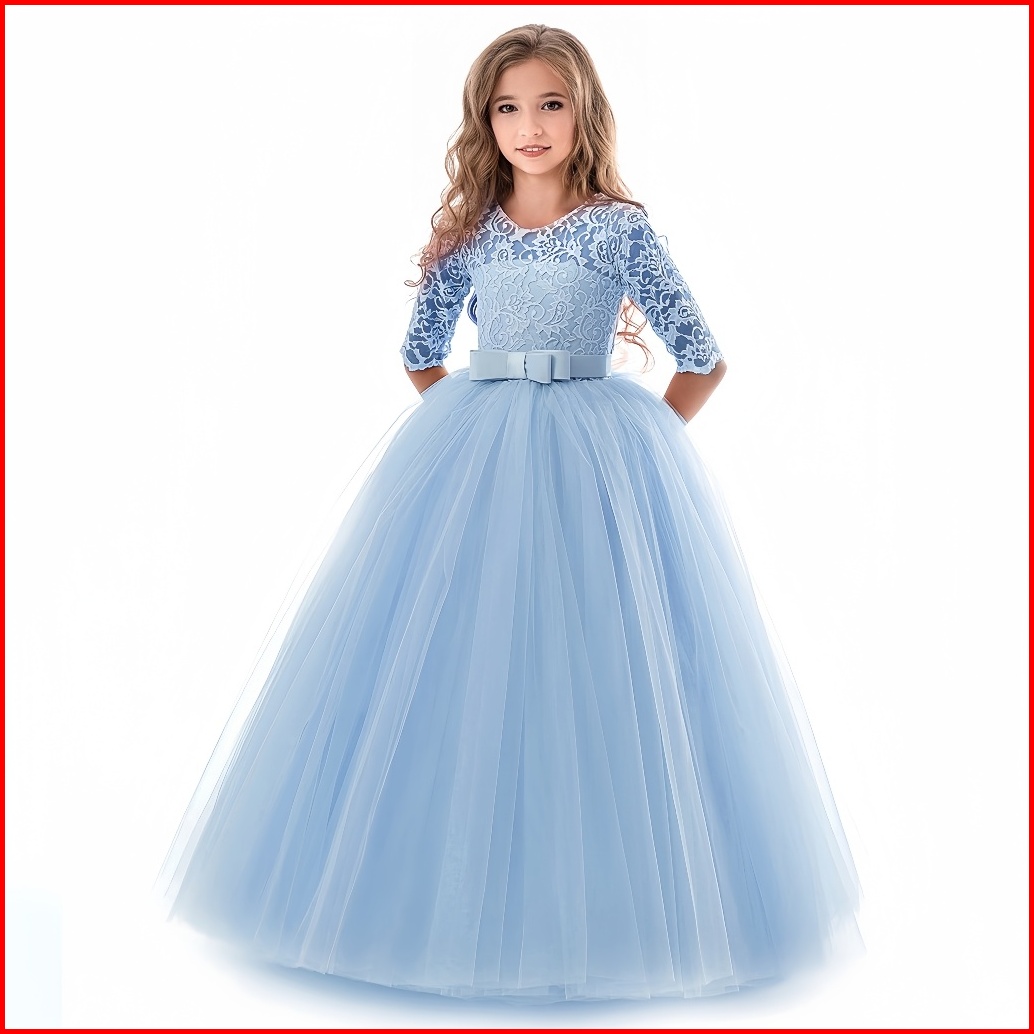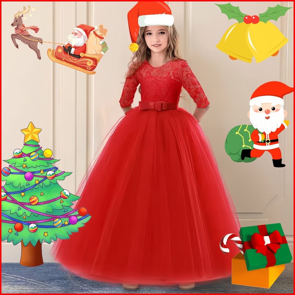 3-11yrs Christmas Party Long Dress Pesta Anak Perempuan S Lace Gaun Pesta Ulang Tahun Anak