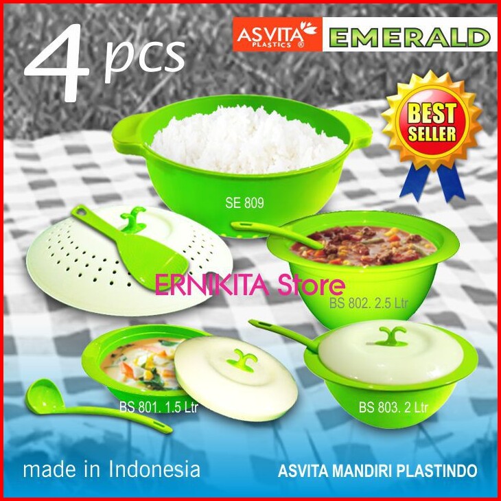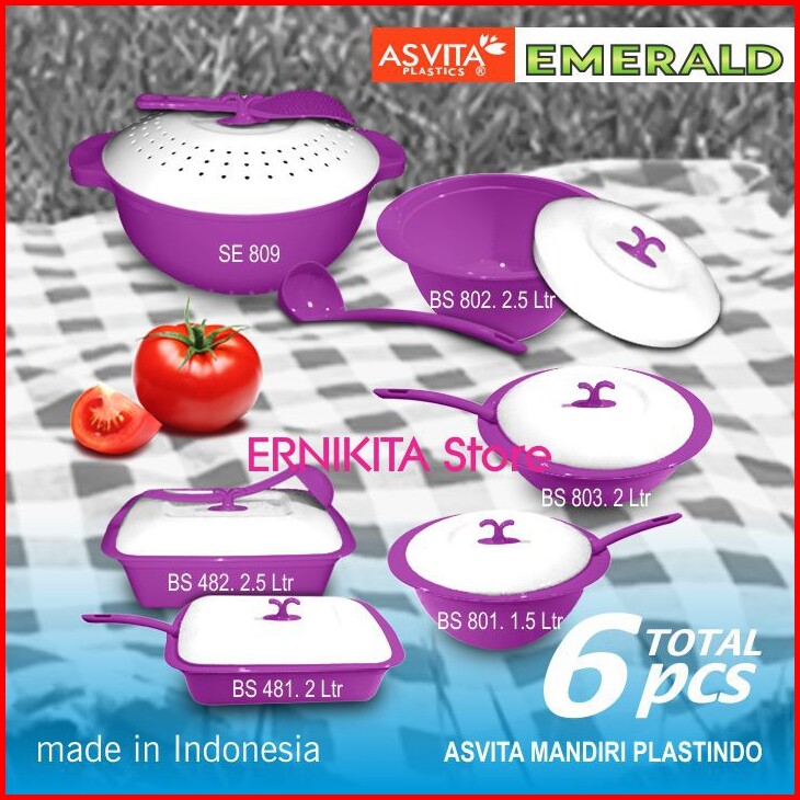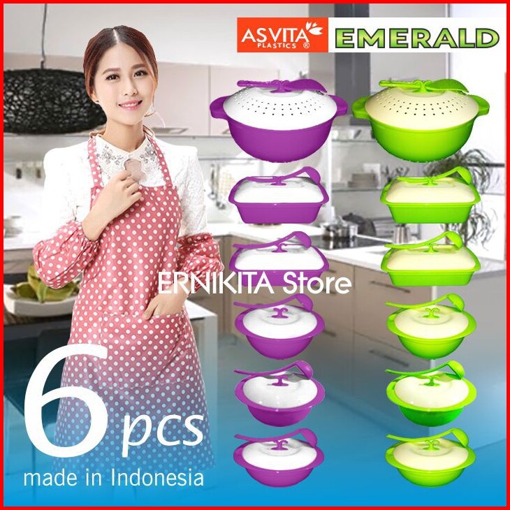 Asvita Emerald Family Set - 6 Pcs Wadah Saji Makanan