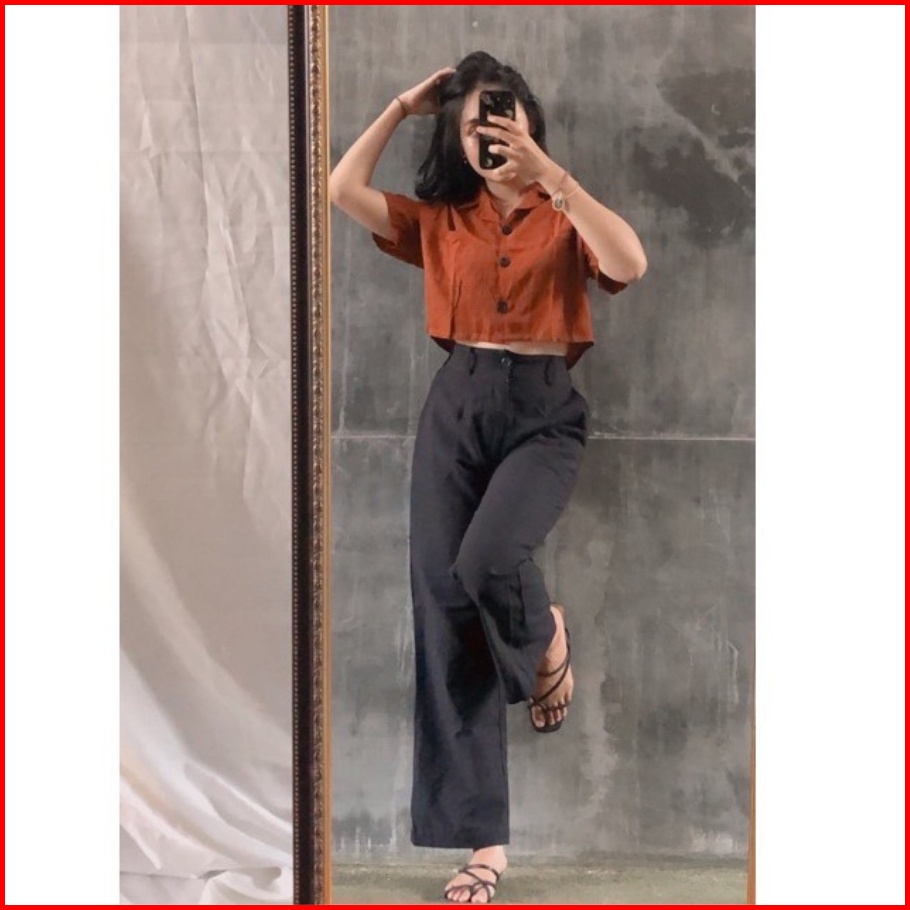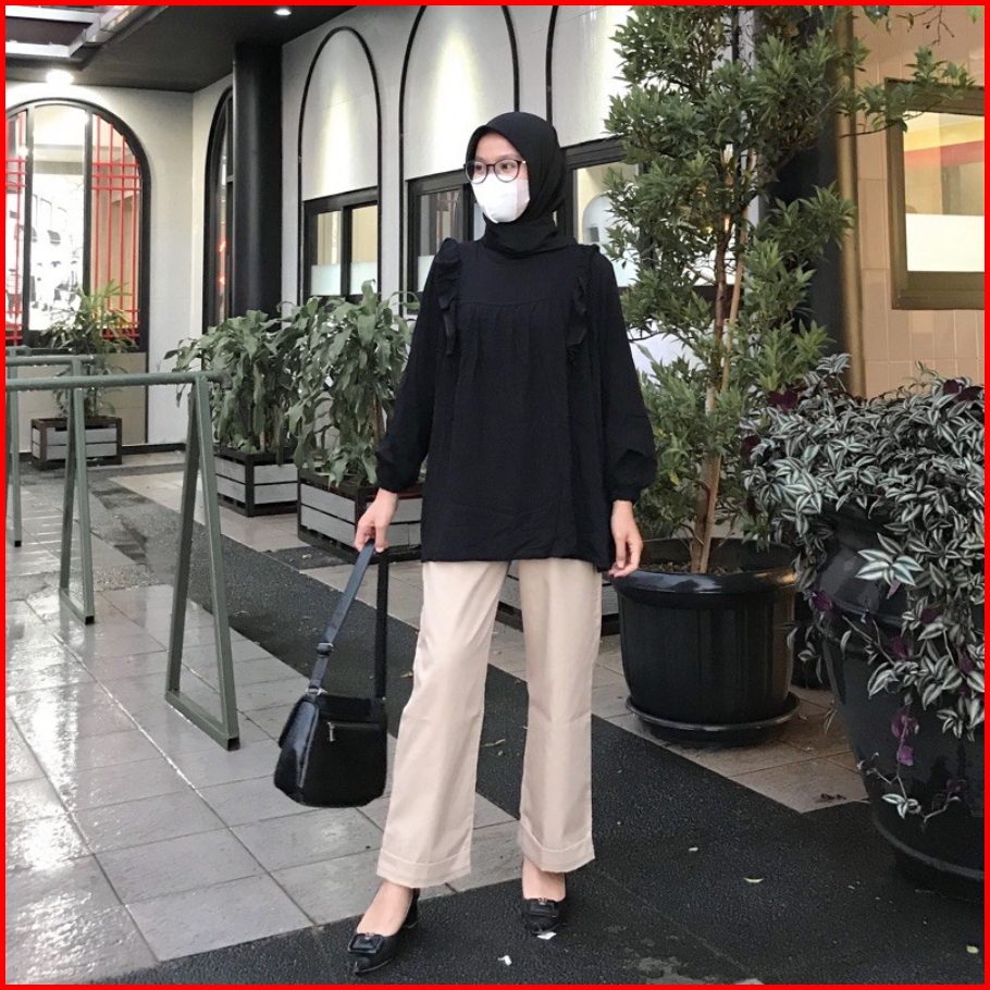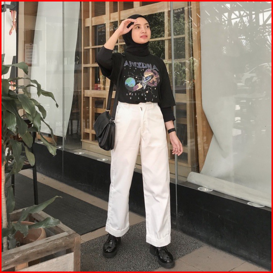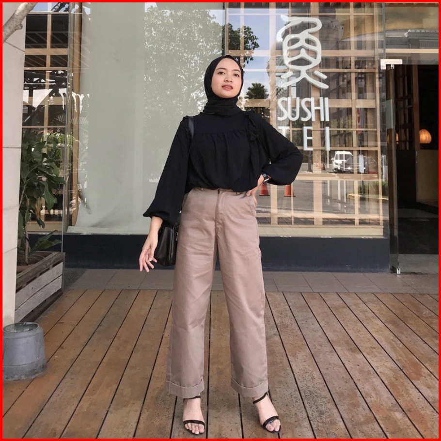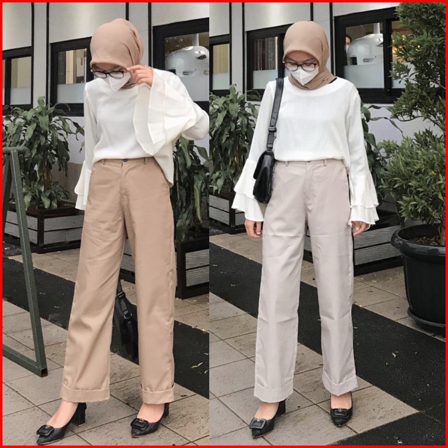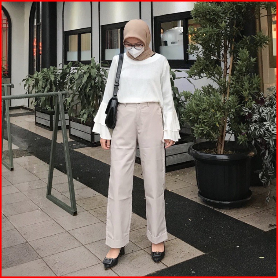 Wekend - Cullote Basic Higwaist Kulot Celana Wanita Pants Model Bawah Lipat