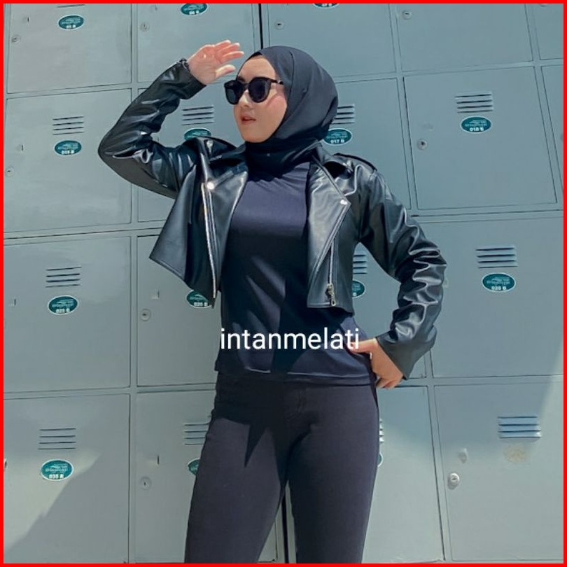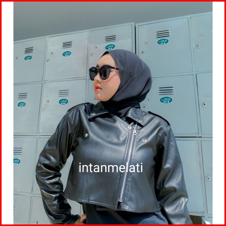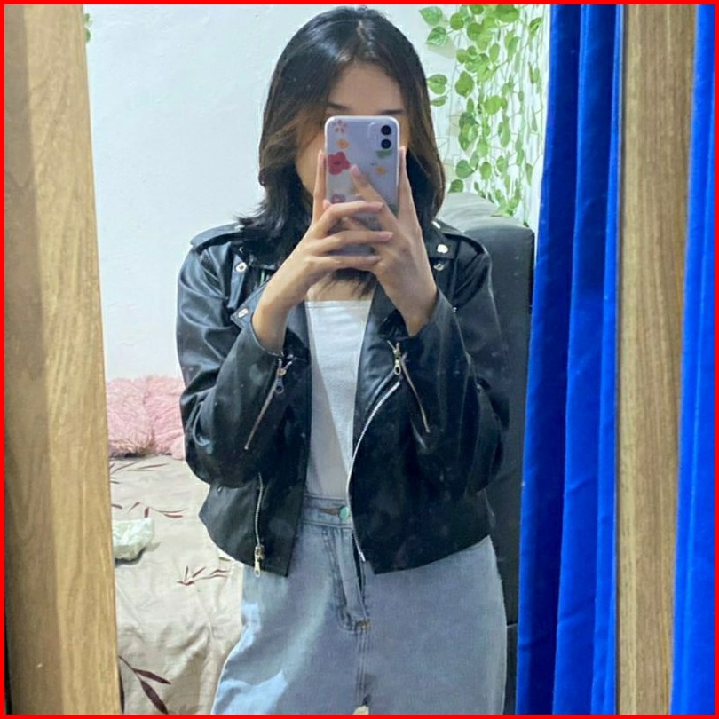 Jaket Kulit Wanita Crop Style Korea Semi Kulit Sintetis Cute Korean