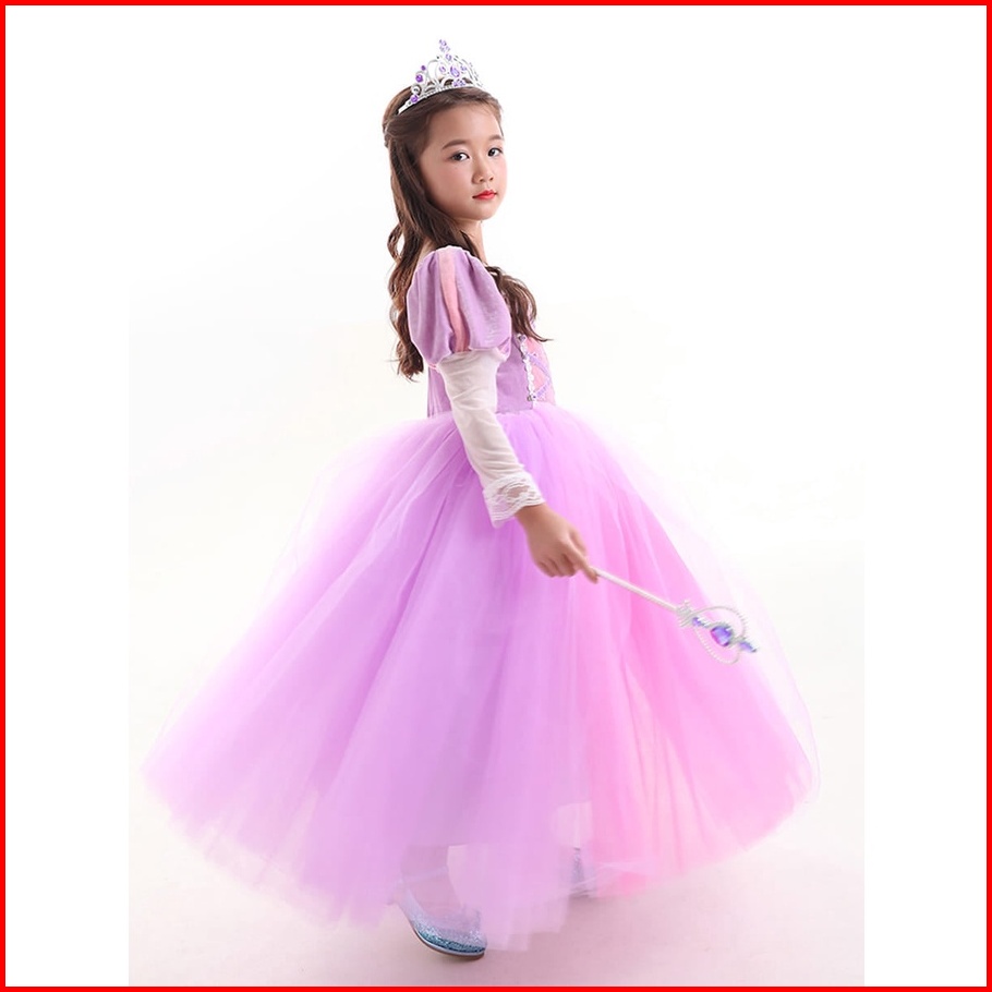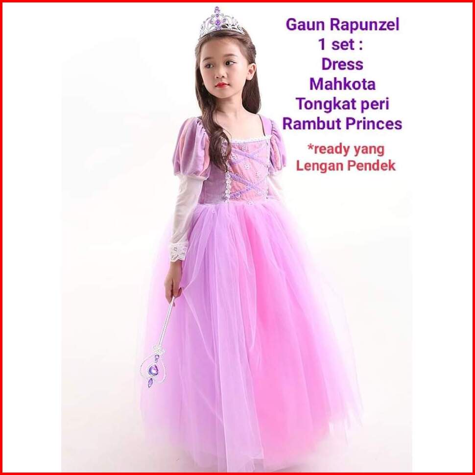 Gaun Princes Rapunzel 1set Gaun Aksesoris Dres Pesta Ulang Tahun Anak Gaun Ulang Tahun Baju Pesta Anak Frozen Gaun Froze
