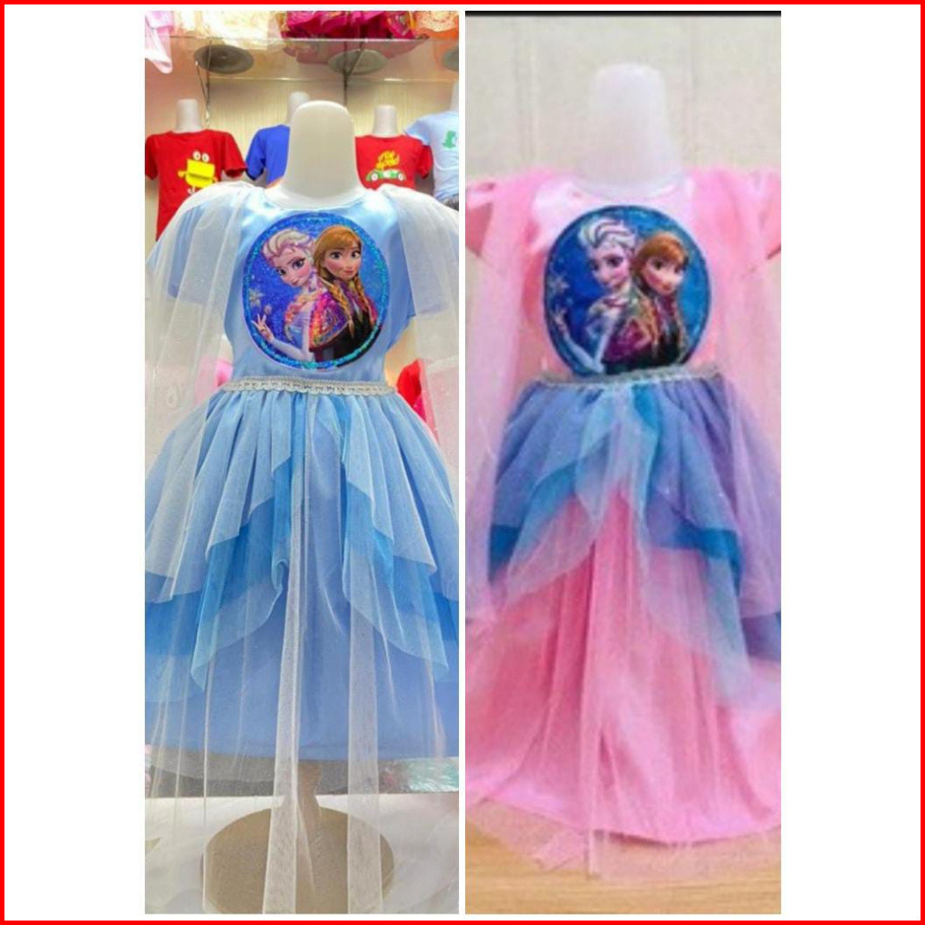 Dress Frozen Elsa Anak Perempuan Usia 2 - 7 Tahun Gaun Pesta Princess Anak Lengan Pendek - Baju Dress Tutu Frozen -