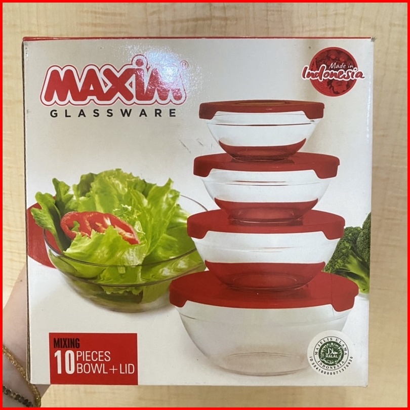 Kotak Makan Isi 5 Pcs Tempat Bekal Kaca Tutup Bulat Maxim