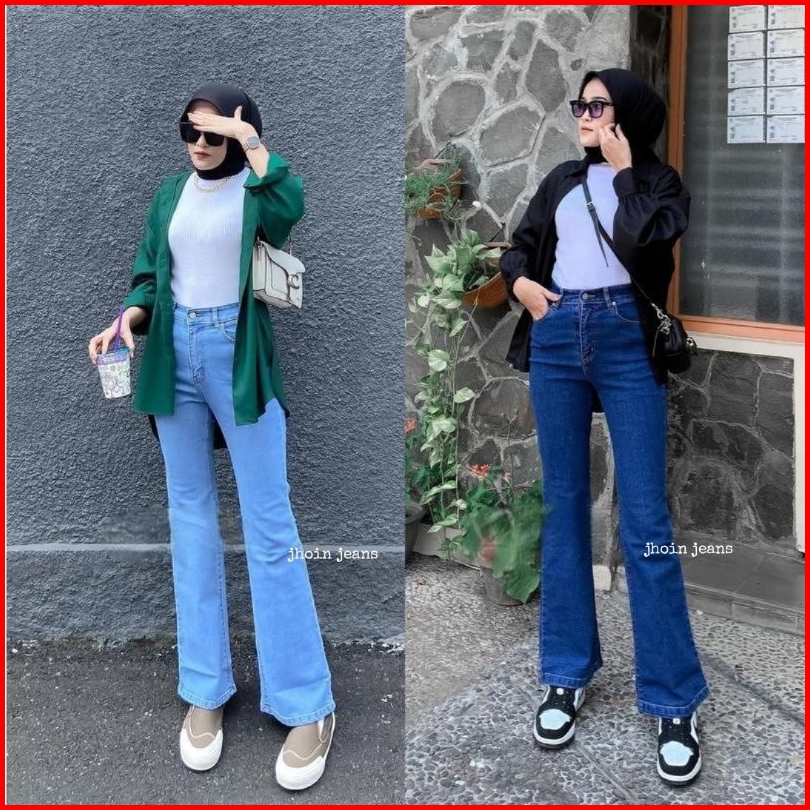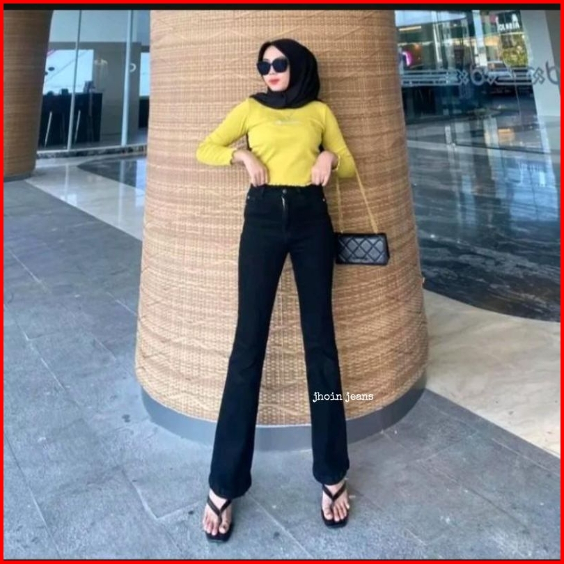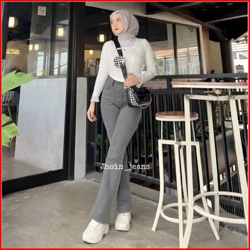 Highwaist Cutbray Jeans Wanita Kekinian 2023 Stretchy