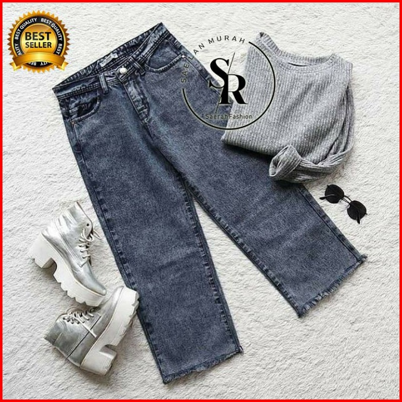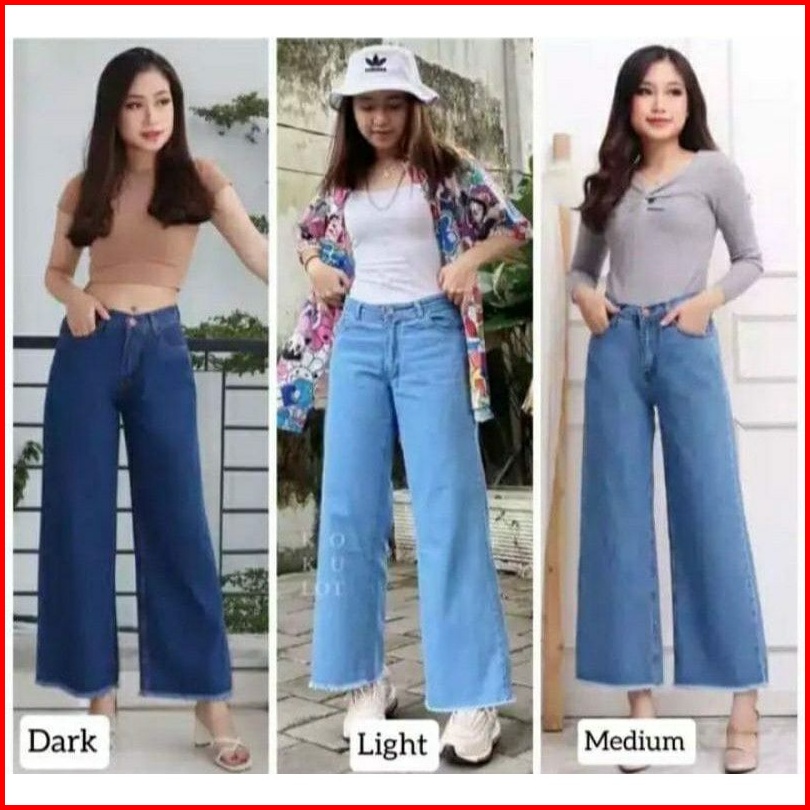 Celana Panjang Jeans Premium Kulot Rawis Tebal