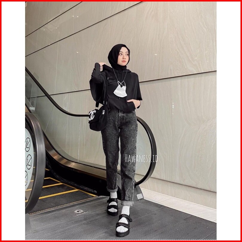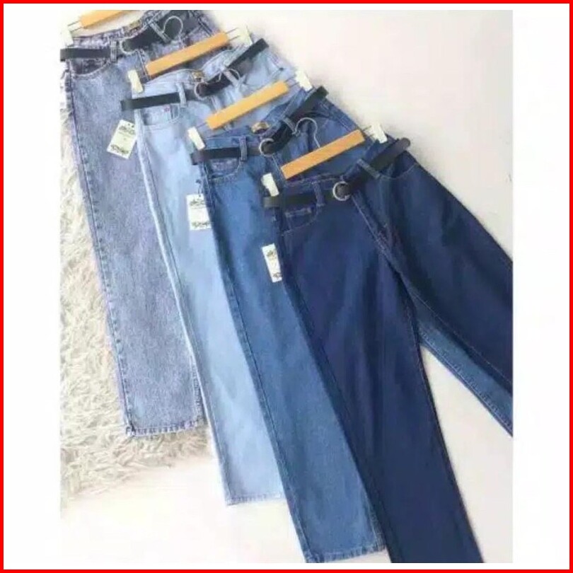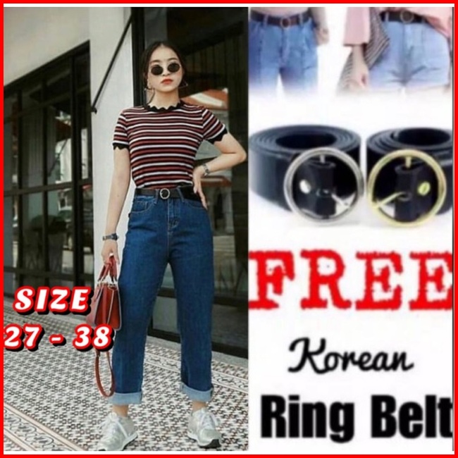 Celana Boyfriend Jeans Snow Wanita Free Belt