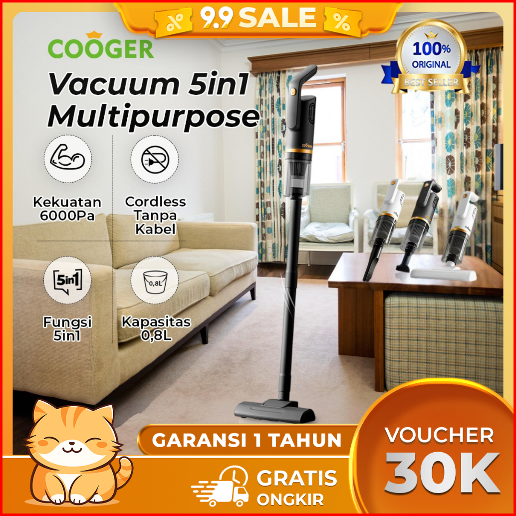 Cooger Vacum Cleaner 5in1 Vacuum Lantai Penyedot Debu 5in1 Dengan Gagang Panjang Hijau Alat Penyedot Debu Serbaguna Peny