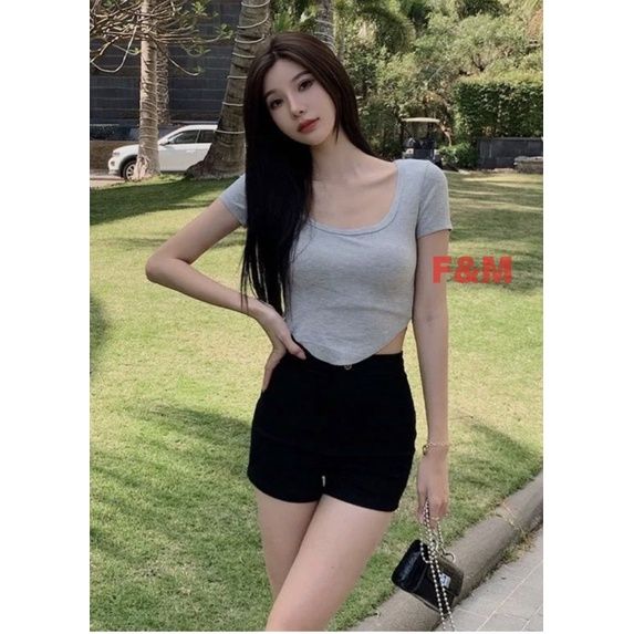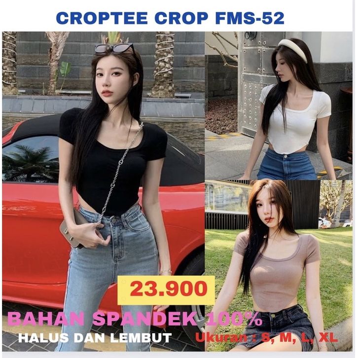 CROPTEE CROPTOP OVAL KOREA (FMS-52) SPANDEK BAJU WANITA