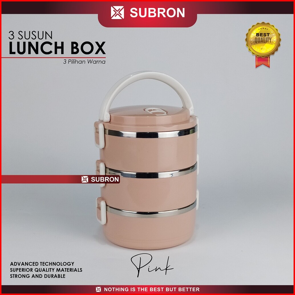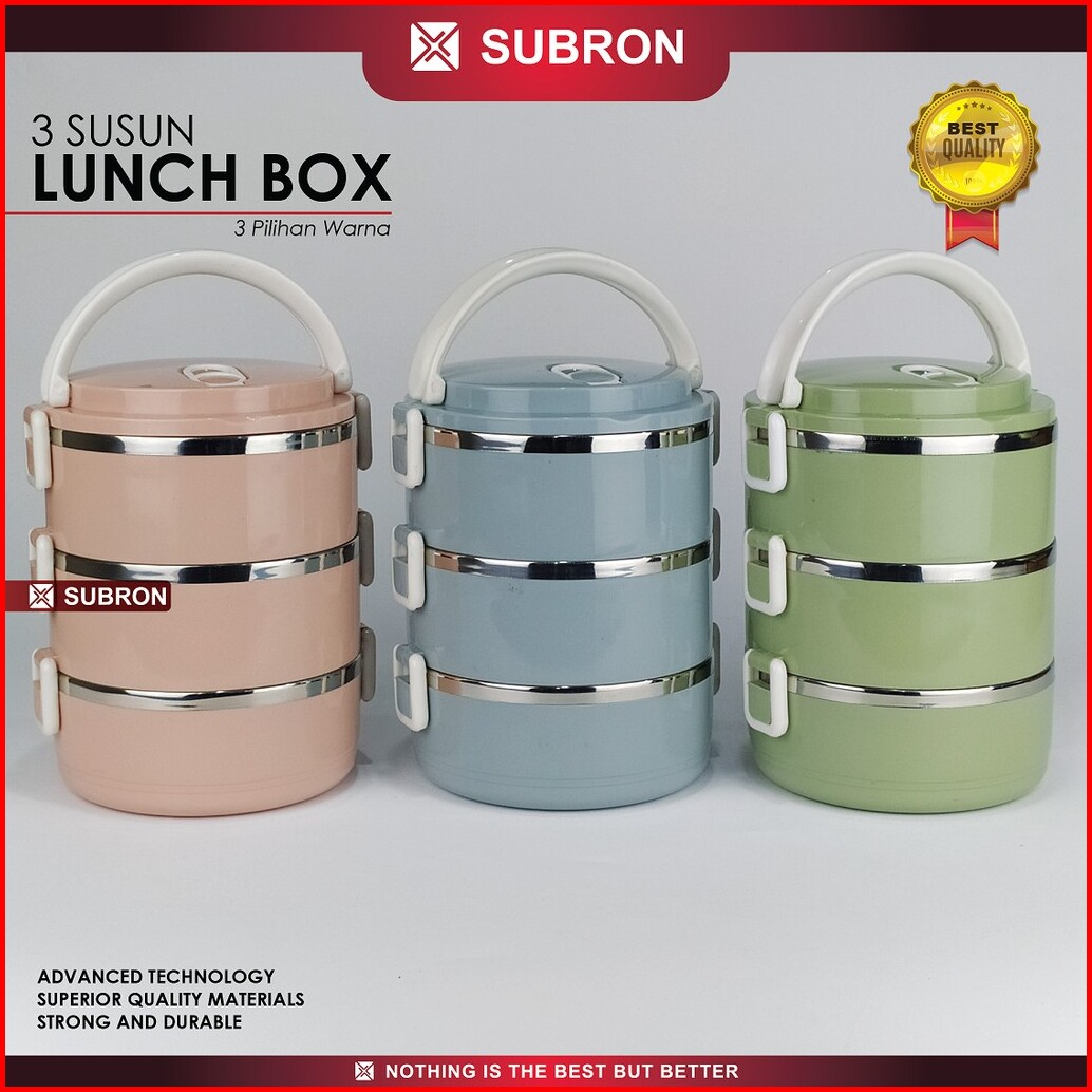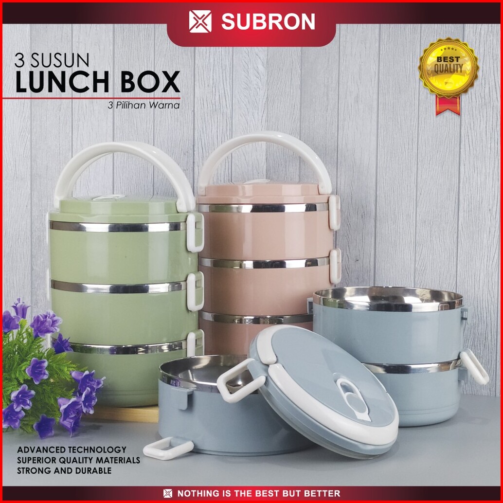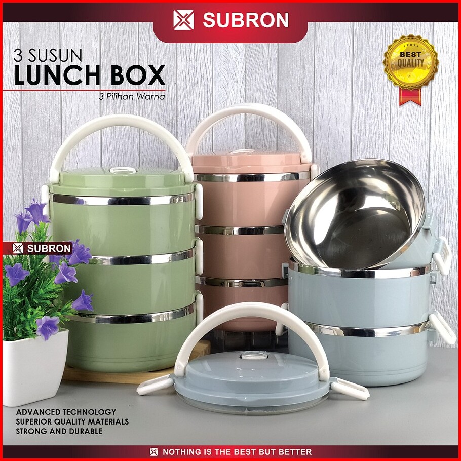 Subron Rantang Lunch Box Tempat Bekel Wadah Bekal Makanan Warna Polos 3 Susun Elegan