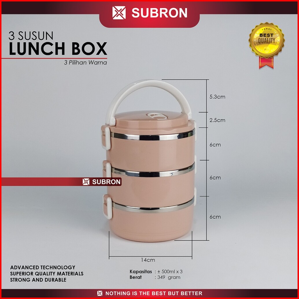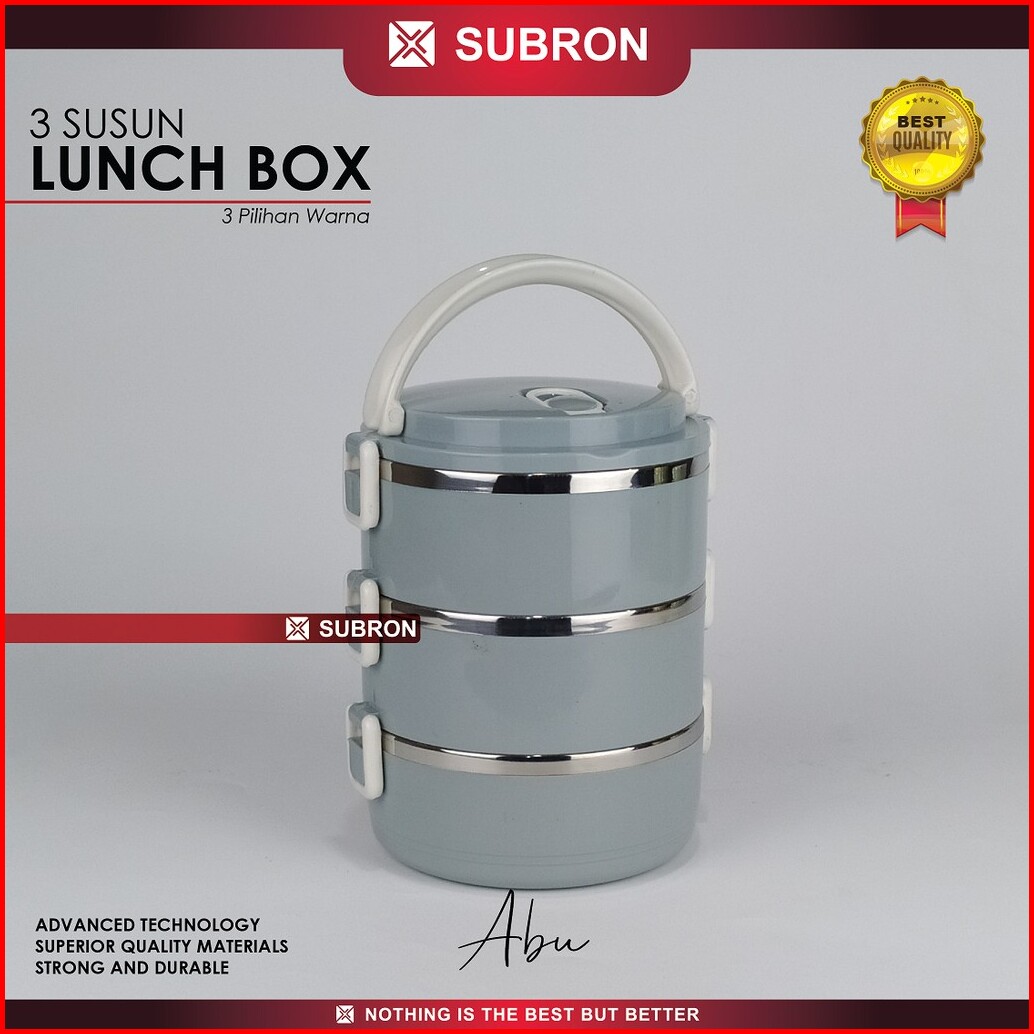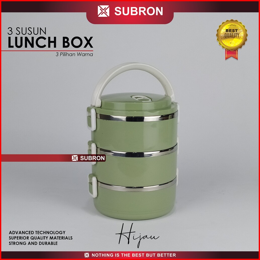 Subron Rantang Lunch Box Tempat Bekel Wadah Bekal Makanan Warna Polos 3 Susun Elegan