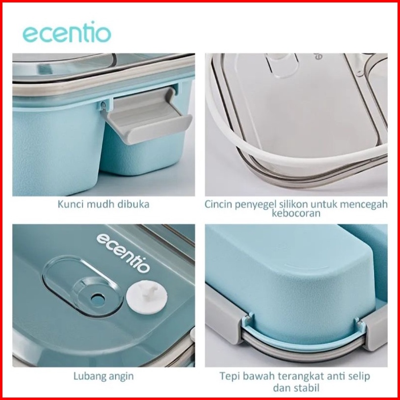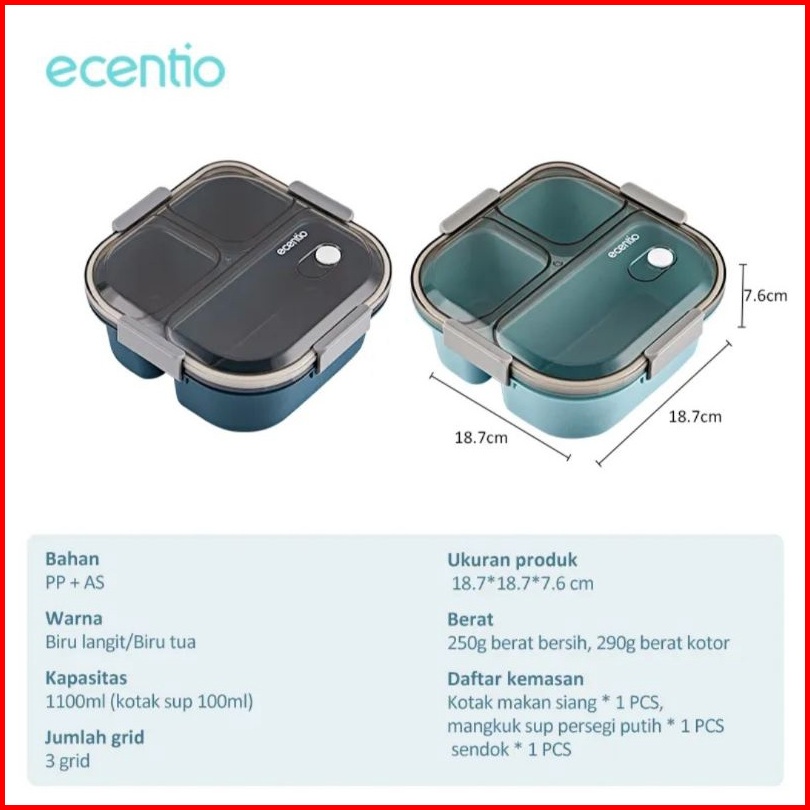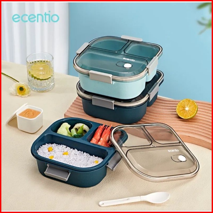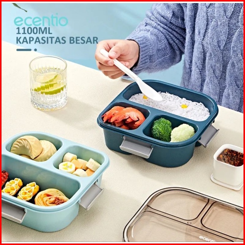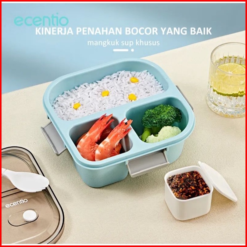 Ecentio Kotak Bekal Anti Tumpah 3 Grid 1100ml Kotak Makan Wadah Bekal Anti Tumpah Kotak Sup 100ml Free Sendok