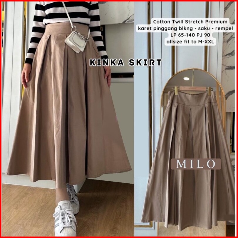 Lovina Lena Skirt Rok Wanita Korean Style Polos Bahan Twill Combed Premium Rok Polos Panjang