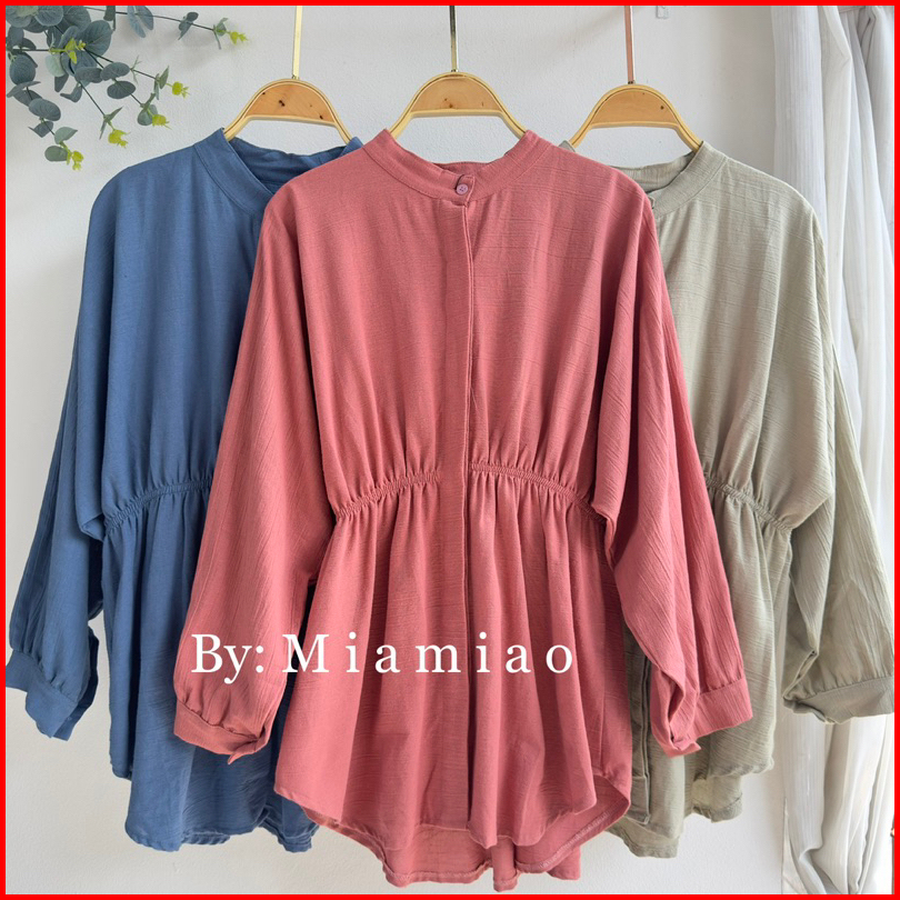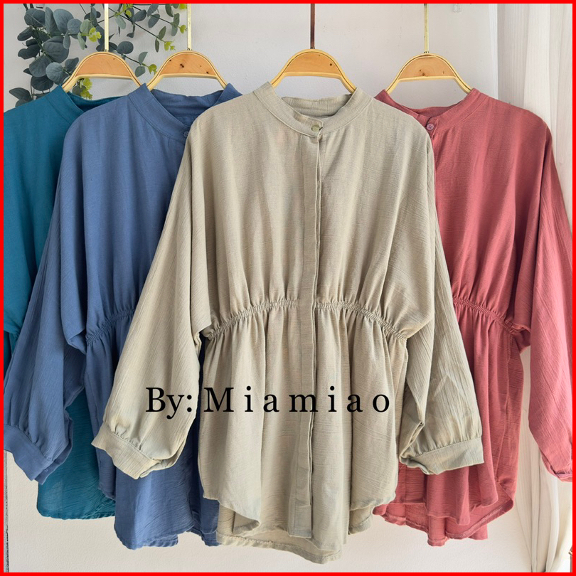 Rania Blouse Linen Crinkle Premium Rania Top Blouse Wanita