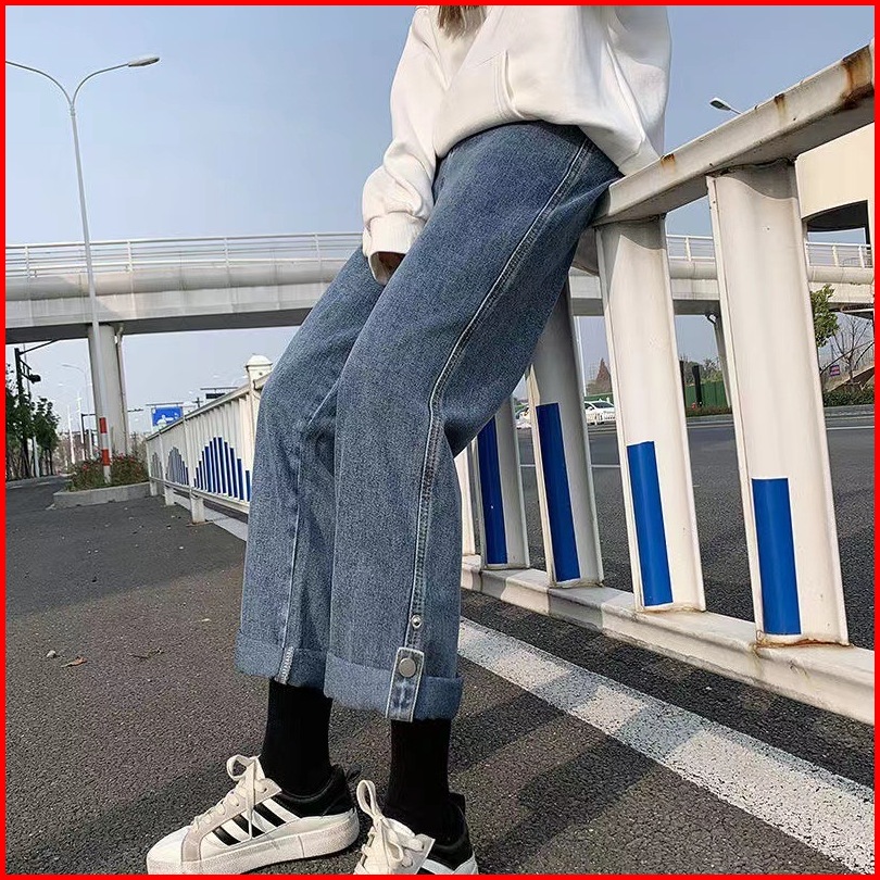 Korean Style Highwaist Loose Straight Celana Kulot Jeans Wide Leg Panjang Bagy Celana Jeans Wanita