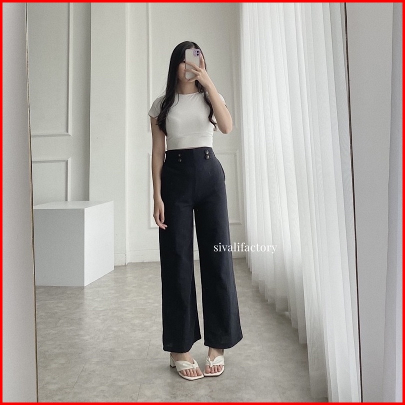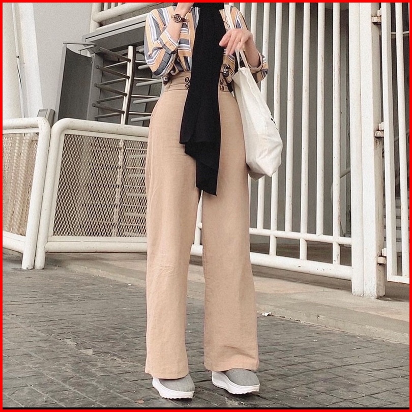 Celana Kulot Linen Highwaist 2238 Premium - Hw Kulot Linen - Linen Cullote Double Button - Linen Pants