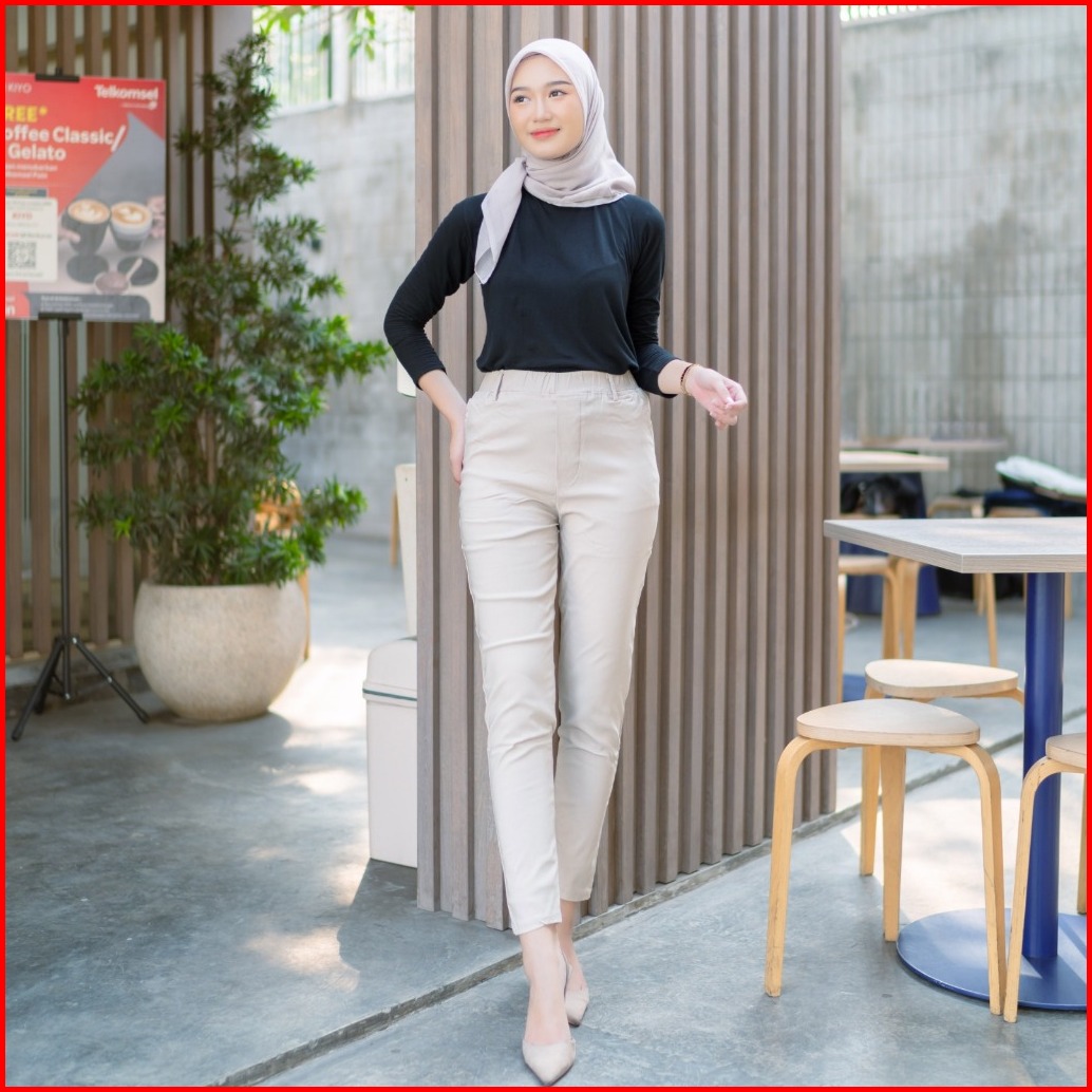 Jeanskuy - Celana Chino Wanita Bahan Melar Elastis Elizabeth Pants