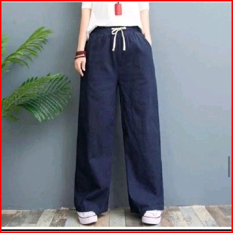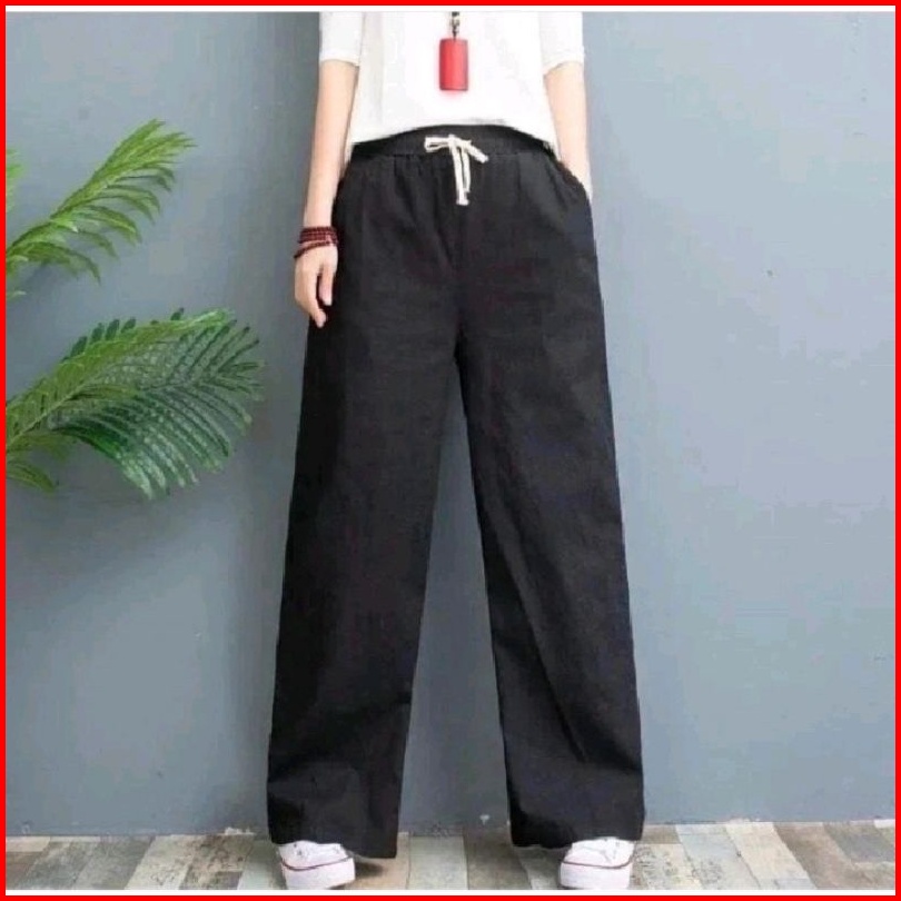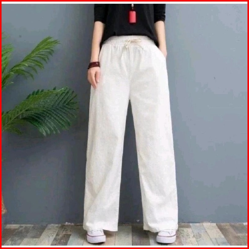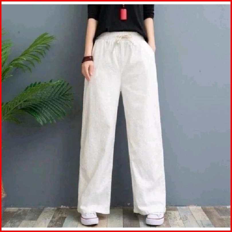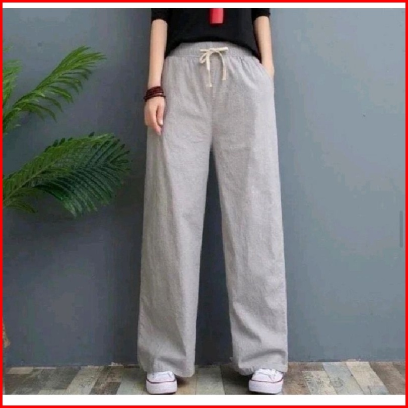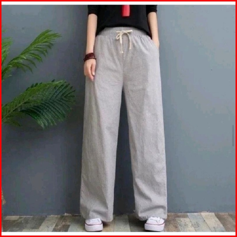 Celana Kulot Wanita Kekinian Bahan Katun Linen Premium Long Straight.