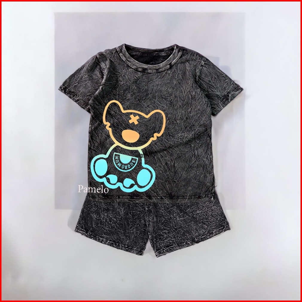 Setelan Wash Anak Best Seller 3 Unisex One Set Anak Stone Wash Set Distro Basic Anak Pria Dan Wanita