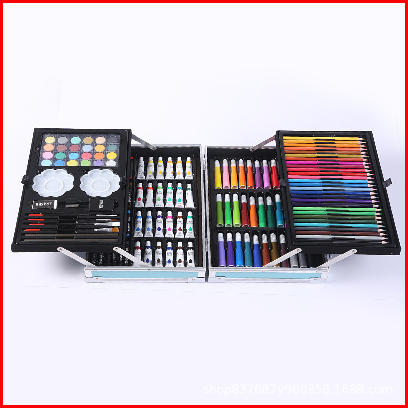 Wd Crayon Set 145pcs Koper Aluminium Besi Krayon Pensil Warna 145 Pcs Box Alat Lukis Anak Koper Set