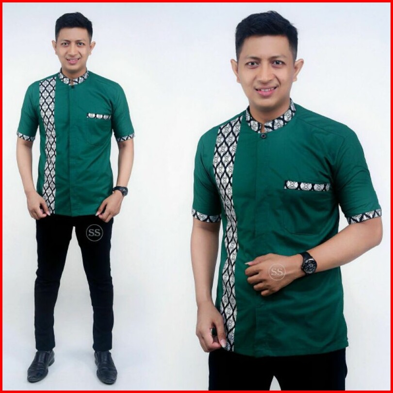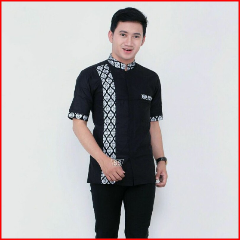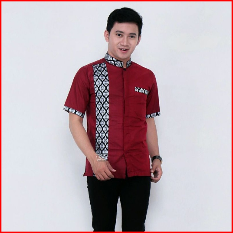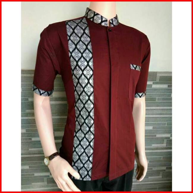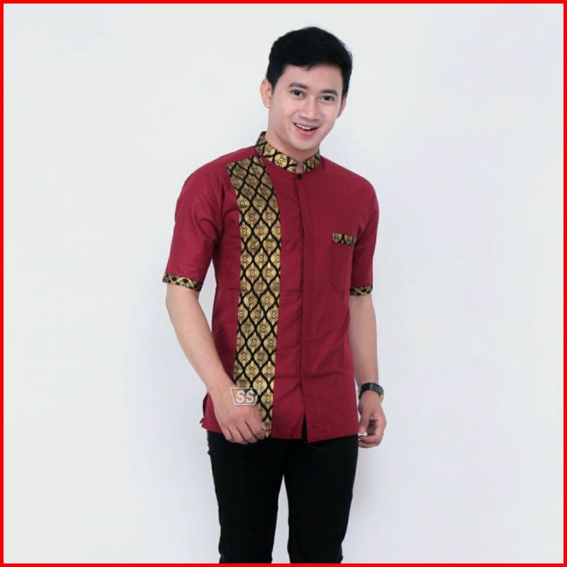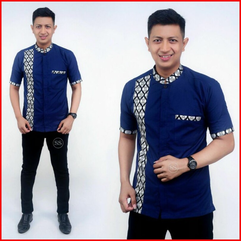 Murah Baju Batik Terbaru Pria Lengan Pendek Merah Dan Biru Kombi Prada Silver