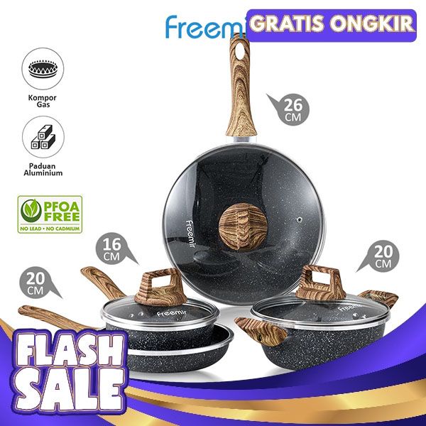 [Mall] [NEW LAUNCH] FREEMIR WAJAN PANCI ANTI LENGKET SET 7 PCS MARBLE LAPISAN GRANIT KOMBINASI ALAT MASAK LENGKAP
