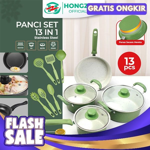 [Mall] HONGZHUO COOKWARE PANCI SET WAJAN PENGGORENGAN SPATULA SET ISI 13PCS 1 SET FRYPAN SAUCEPAN