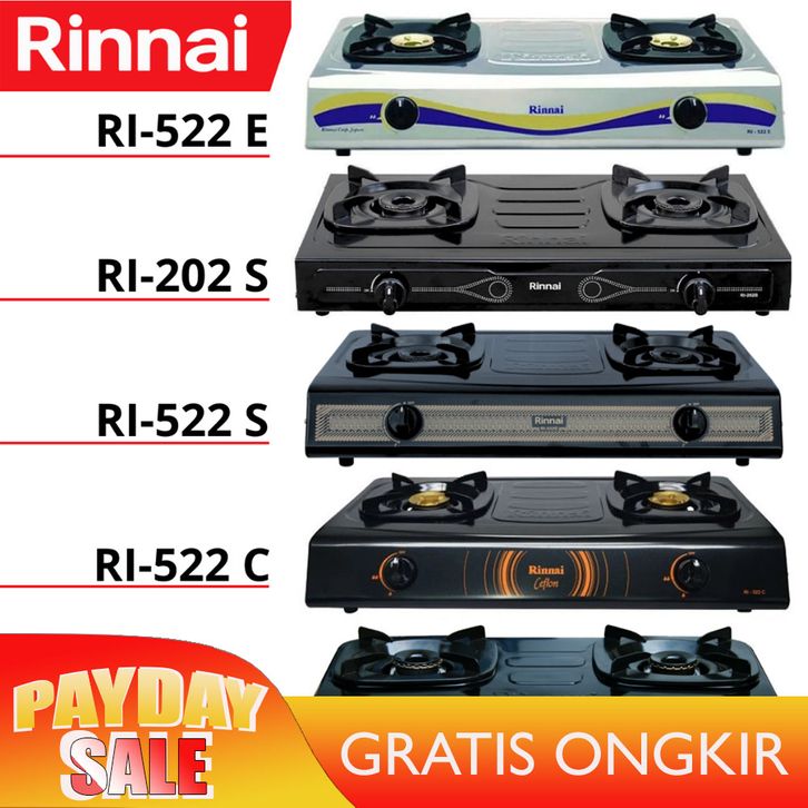 TANPA DP KOMPOR GAS RINNAI 2 TUNGKU RI 202S 302S 522S 522C 522E PLUS SELANG REGULATOR