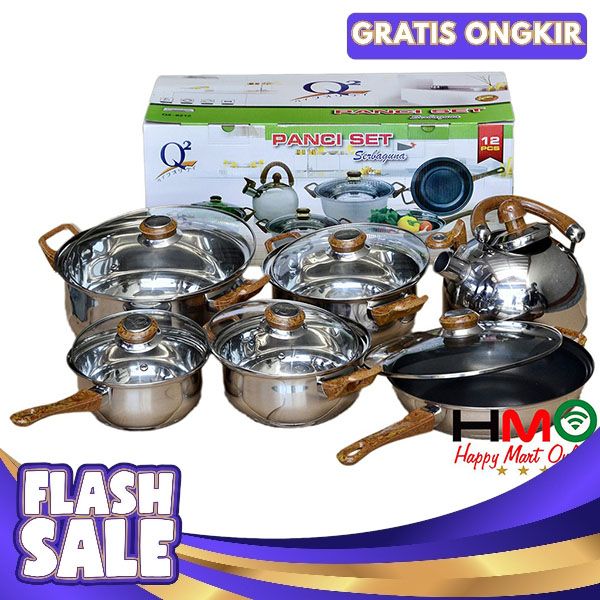 [Mall] PANCI SET STAINLESS STEEL 12 PCS DENGAN TEKO STAINLESS Q2-8212 Q2 8212