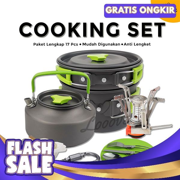 [Mall] PAKET LENGKAP ALAT MASAK CAMPING + KOMPOR / NESTING COOKING SET 17 PCS