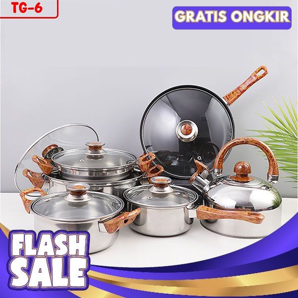 [Mall] PERABOT PANCI SET STAINLESS STEEL 12 PCS PANCI SET TUTUP KACA PANCI SET 12 COOKWARE