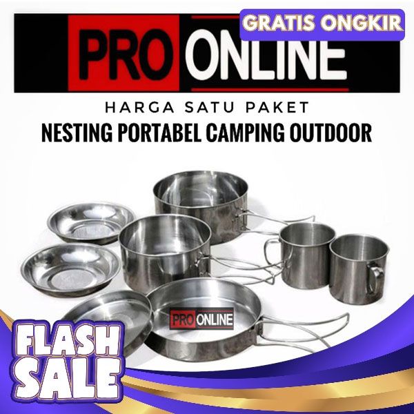 [Mall] COOKING SET MERK CAMELWIL NESTING FREE GELAS - ALAT MASAK PORTABEL PANCI SATU SET STAINLESS CAMPING OUTDOOR