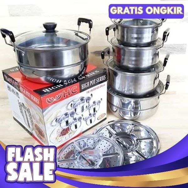 [Mall] PANCI SET 5 PCS STEAMER TUTUP KACA STAINLESS STEEL TEBAL