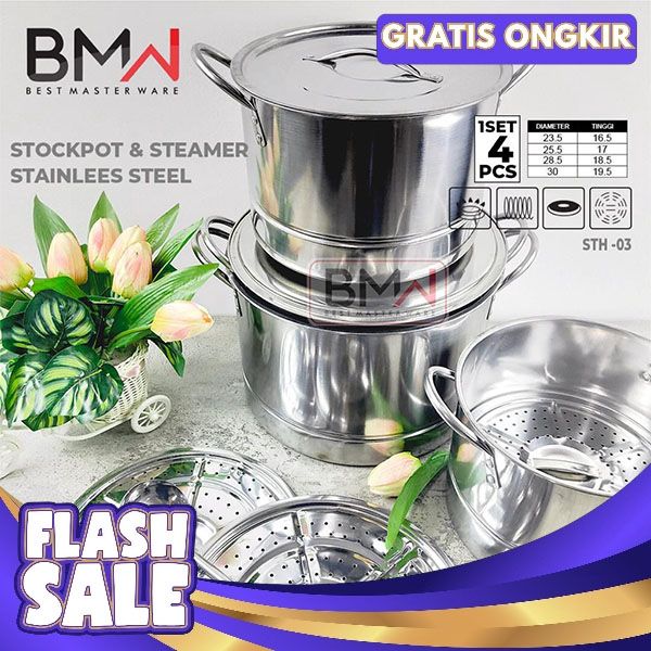 [Mall] STOCK POT STEAMER 4 SET / PANCI KUKUS 4 SET / PANCI DANDANG STAINLESS STEEL
