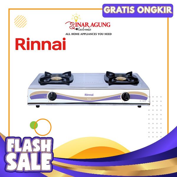 [Mall] RINNAI KOMPOR GAS RI522E / RI 522 E 2 TUNGKU STAINLESS STEEL ORIGINAL