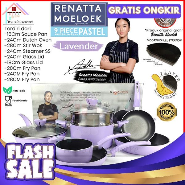 [Mall] (FREE PACKING DUS + BUBBLE) PANCI SET 9PCS RENATA MOELOEK/ COOKWARE SET PASTEL LAVENDER SUPRA