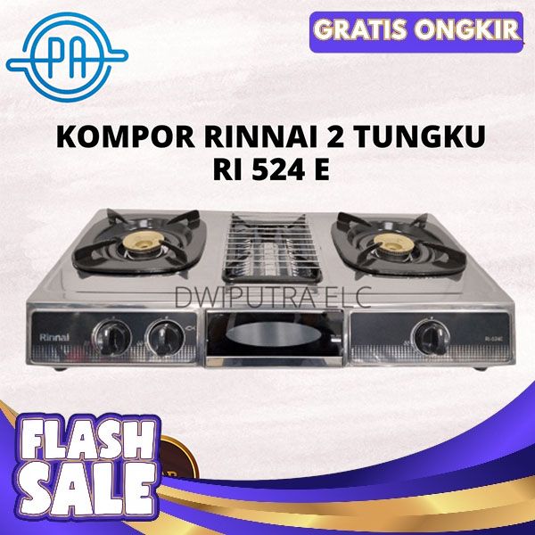 [Mall] KOMPOR GAS RINNAI 3 TUNGKU RI 524 E / RI524E WITH GRILL PAN PANGGANGAN BAKARAN STAINLESS STEEL