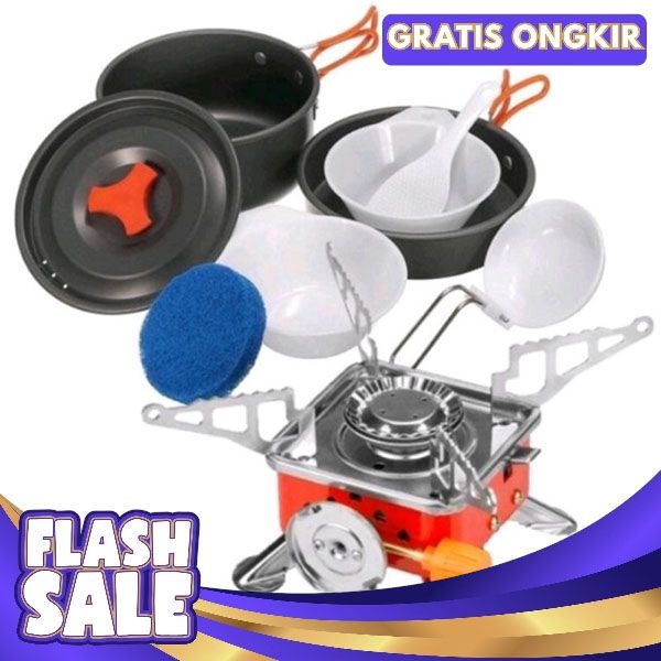 [Mall] PAKET HEMAT KOMPOR DAN WAJAN COOKING SET DS200 & STOVE PORTABLE K202 CAMPING OUTDOOR