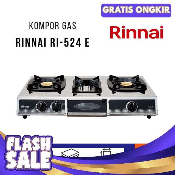 [Mall] RINNAI : KOMPOR 2 TUNGKU + GRILL PAN / PANGGANGAN SATE RI 524E ( 524 E )